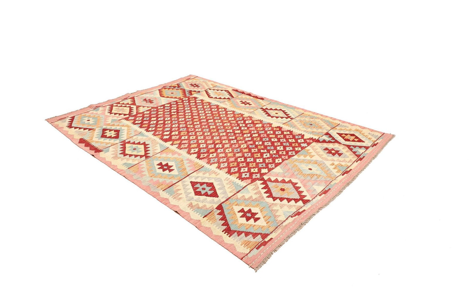 1446$ In den WarenkorbKelim 215 x 144 cm – Handgewebt mit identischem Muster auf Vorder- und Rückseite – Orientteppich