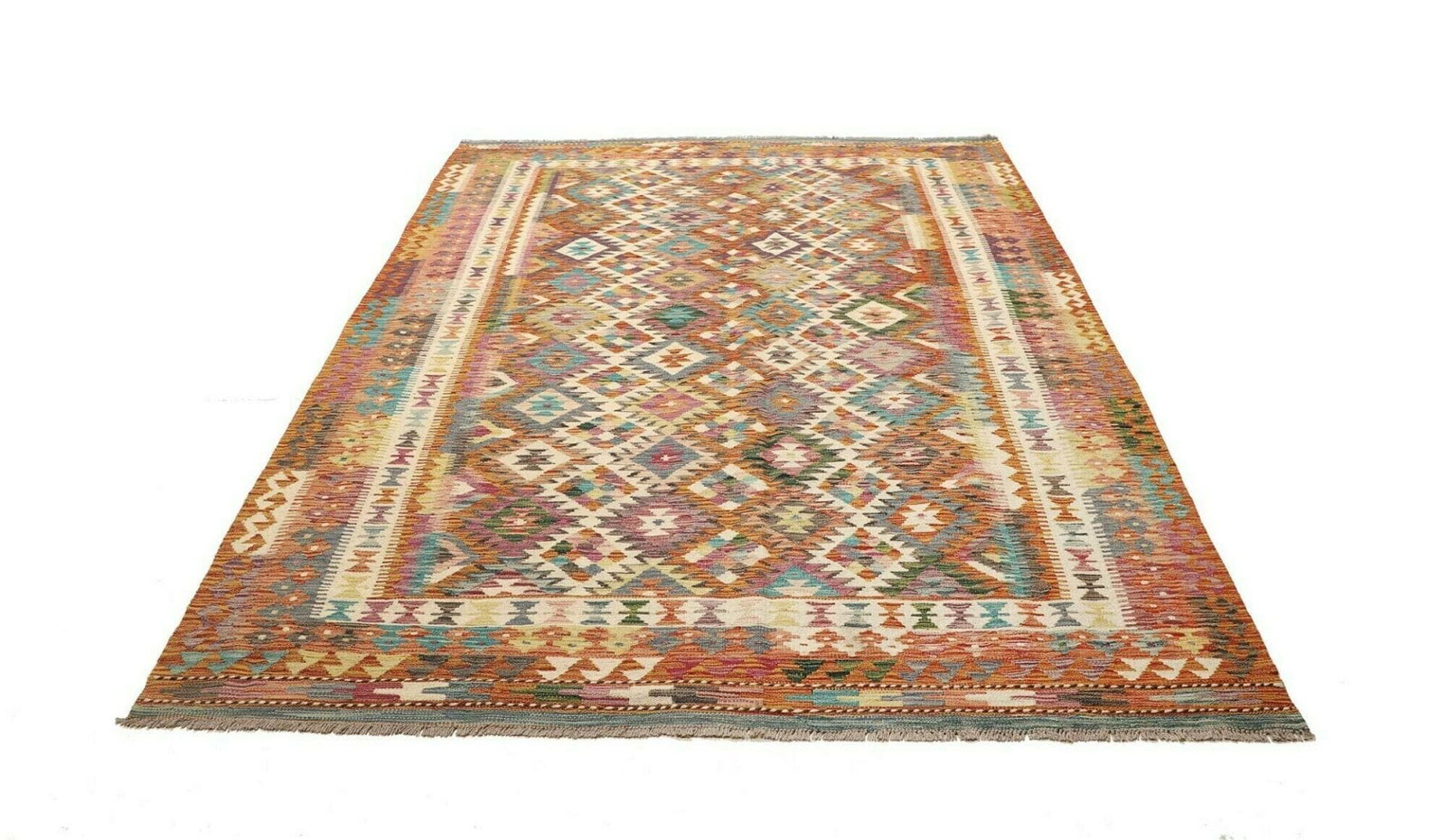 679$Ursprünglicher Preis war: 679$572$Aktueller Preis ist: 572$Kelim Teppich | Knotendichte: ca. 200.000 Knoten/m² | Material: 100% Schurwolle | Größe: 183 x 251 cm | Zustand: Handgewebte Qualität | Herkunft: Pakistan | Florhöhe: ca. 5 mm | Kette: 100% Baumwolle