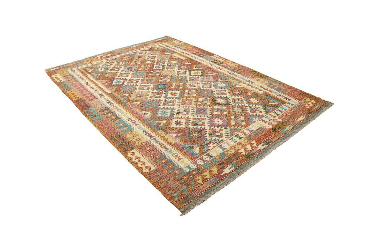 Kelim Teppich 183 x 251cm, handgewebt, rustikales Design, Wolle