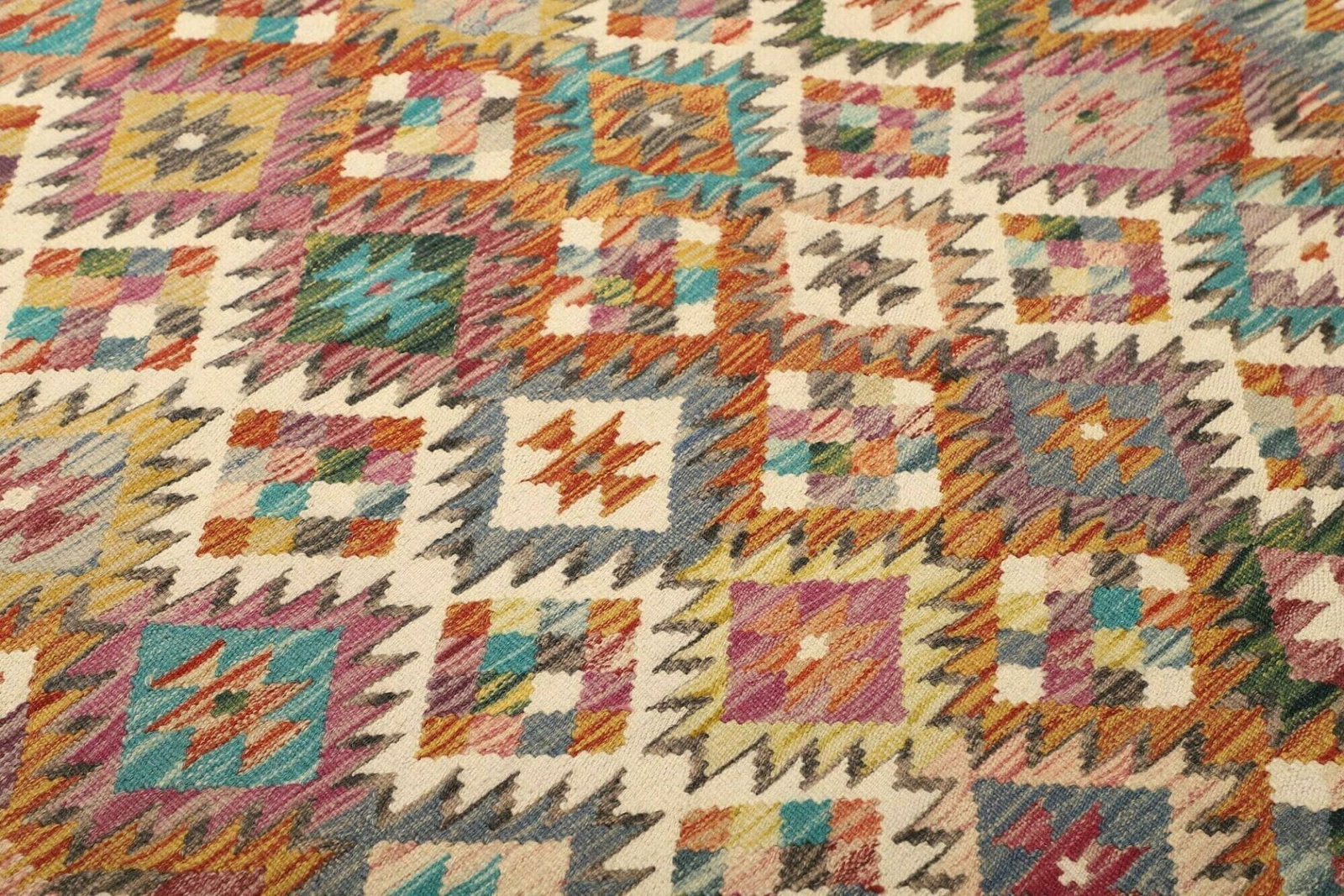 Kelim Teppich, handgewebt, rustikales Design, Wolle