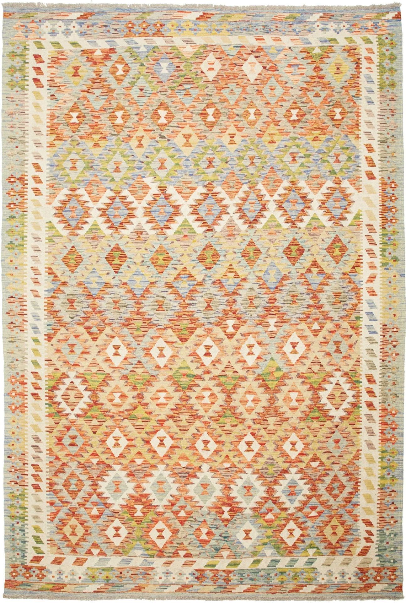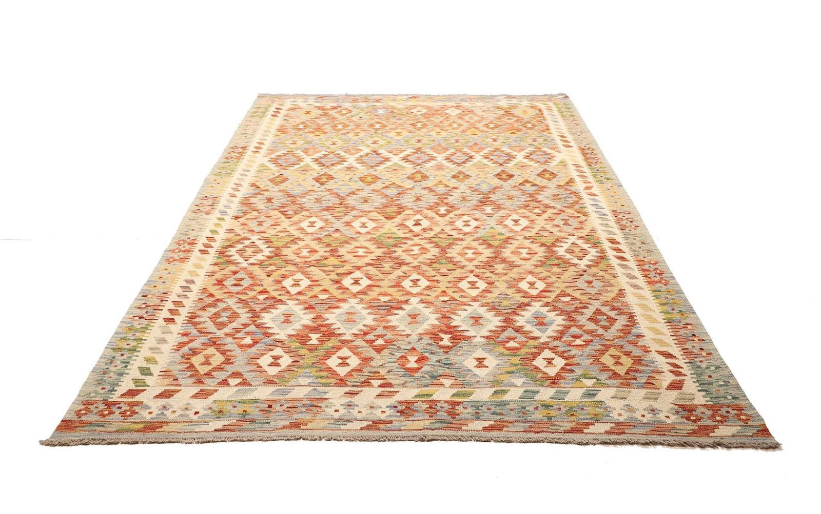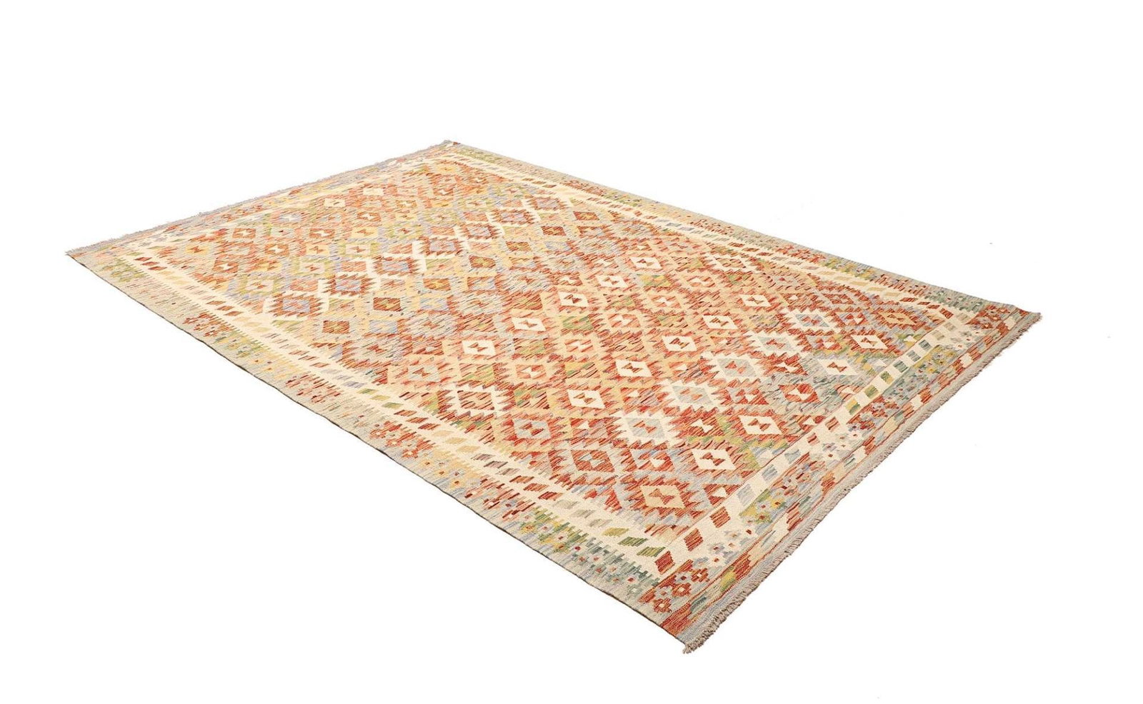 Kelim Teppich | Knotendichte: ca. 200.000 Knoten/m² | Material: 100% Schurwolle (Flor), 100% Baumwolle (Kette) | Größe: 183×263 cm | Herkunft: Pakistan | Verarbeitung: Handgewebt | Zustand: Sehr gut