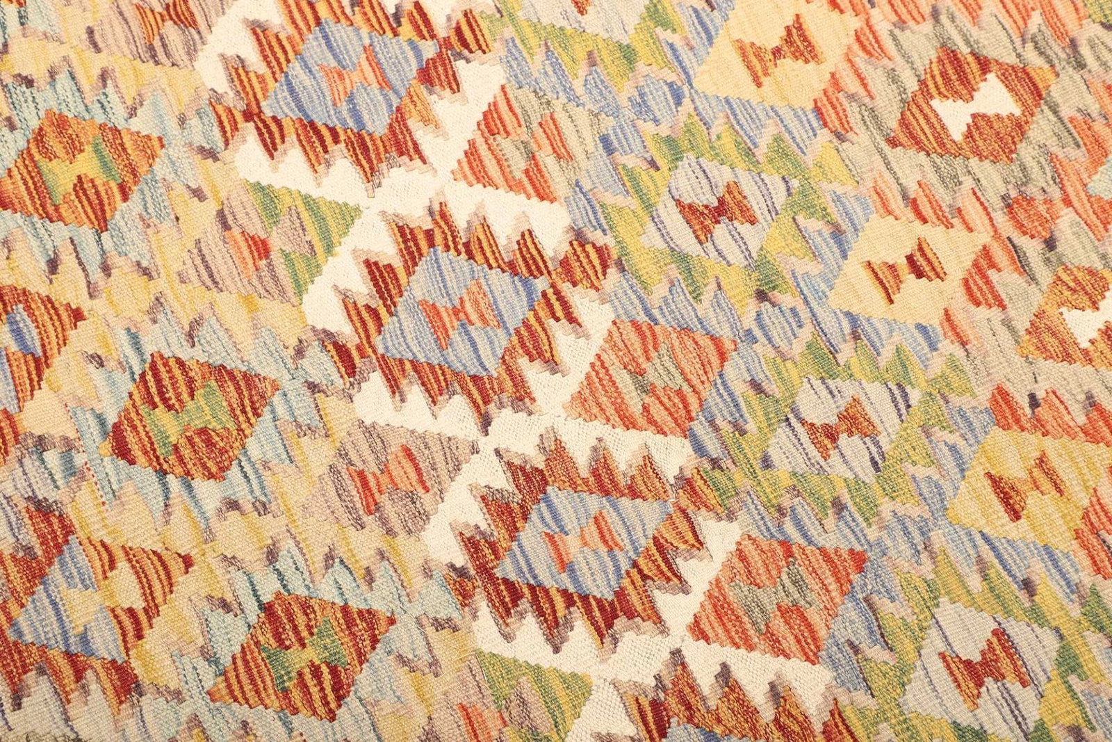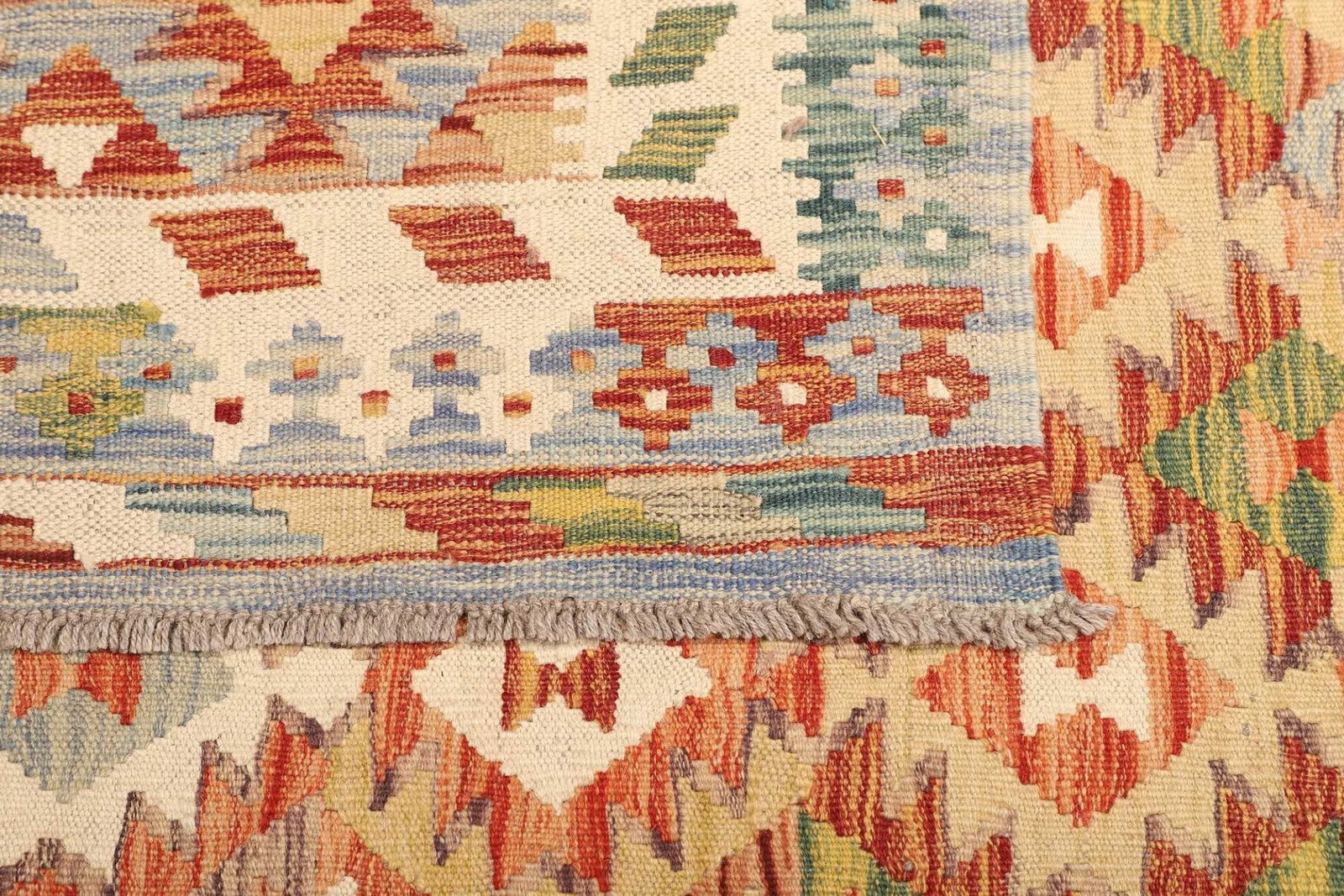 Handgewebte Teppiche, wie unser Kelim, sind in der Regel einzigartig und werden aus hochwertigen Materialien von erfahrenen Handwerkern hergestellt. Die Zeit und das Geschick, das in die Handwerkskunst investiert wird, erhöhen die Kosten, sorgen jedoch auch für eine überlegene Qualität und Langlebigkeit im Vergleich zu maschinell gefertigten Teppichen.
