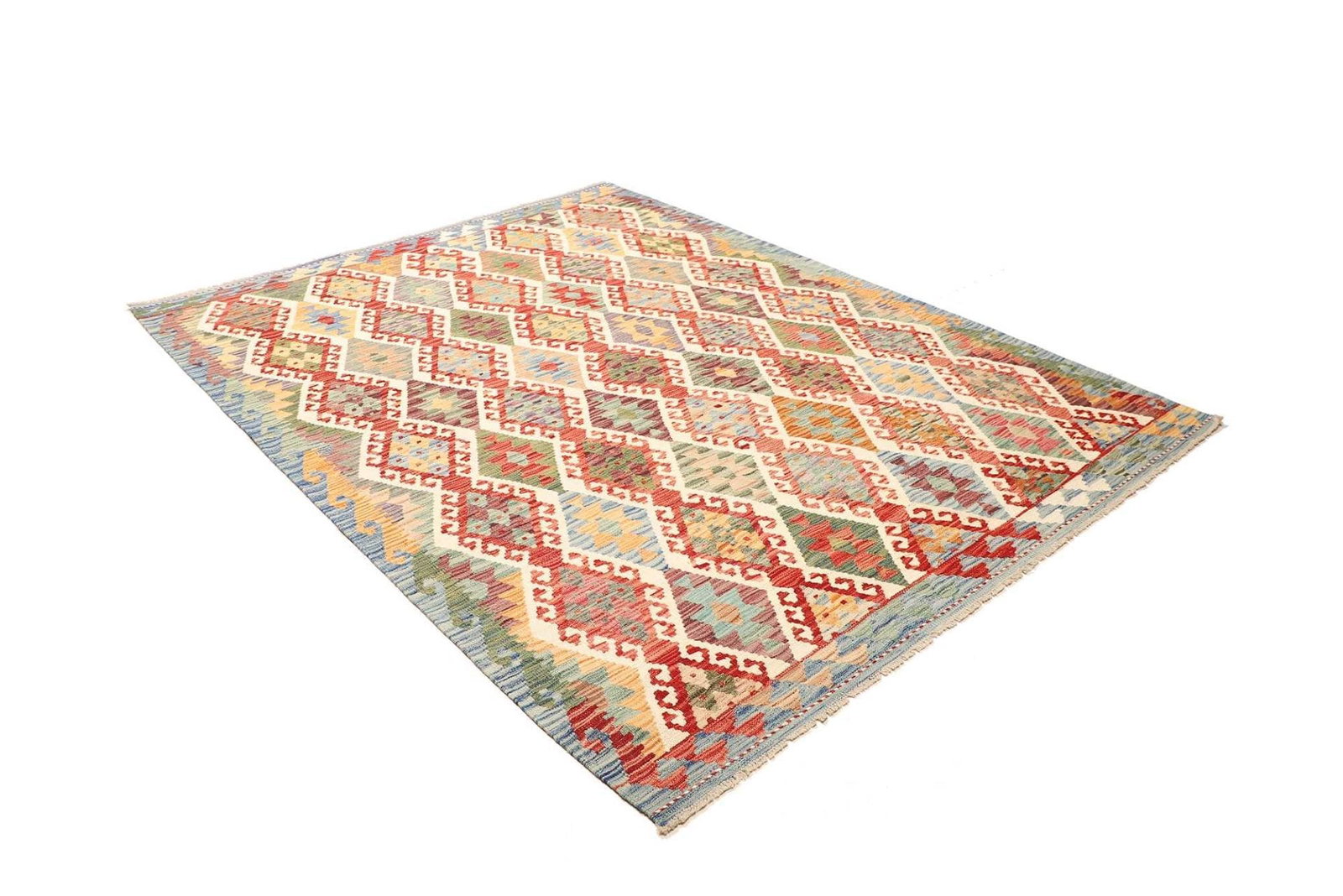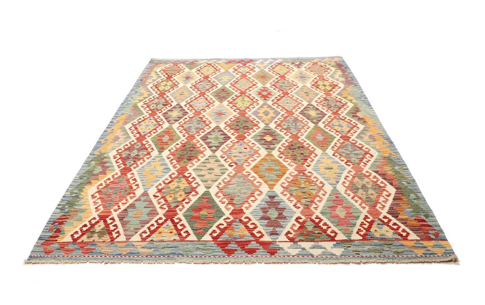971$ In den WarenkorbKelim 215 x 144 cm – Handgewebt mit identischem Muster auf Vorder- und Rückseite – Orientteppich