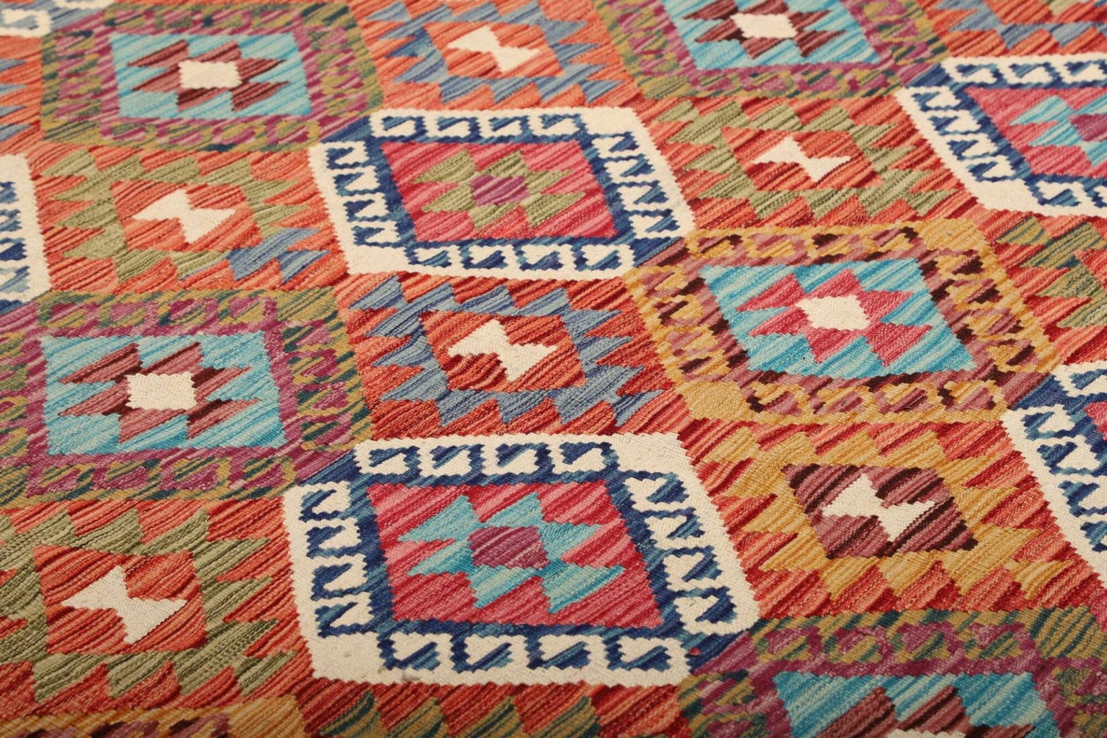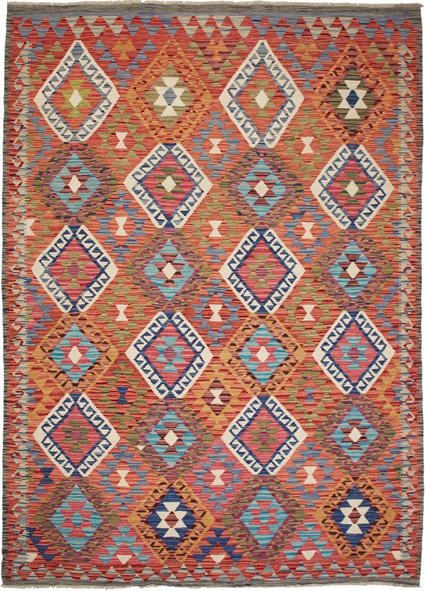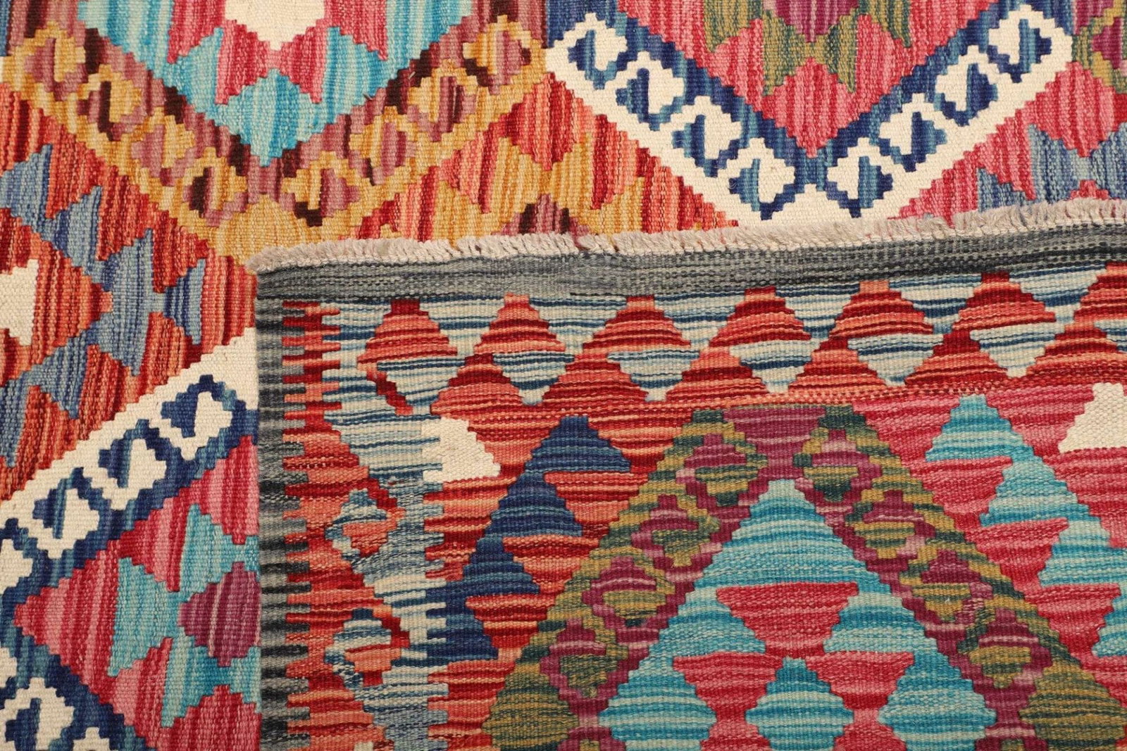 Handgewebter Kelim Teppich | Knotendichte: ca. 200.000 Knoten/m² | Material: 100% Schurwolle und 100% Baumwolle | Größe: 184×251 cm | Herkunft: Pakistan | Florhöhe: ca. 5 mm | Beidseitig verwendbar