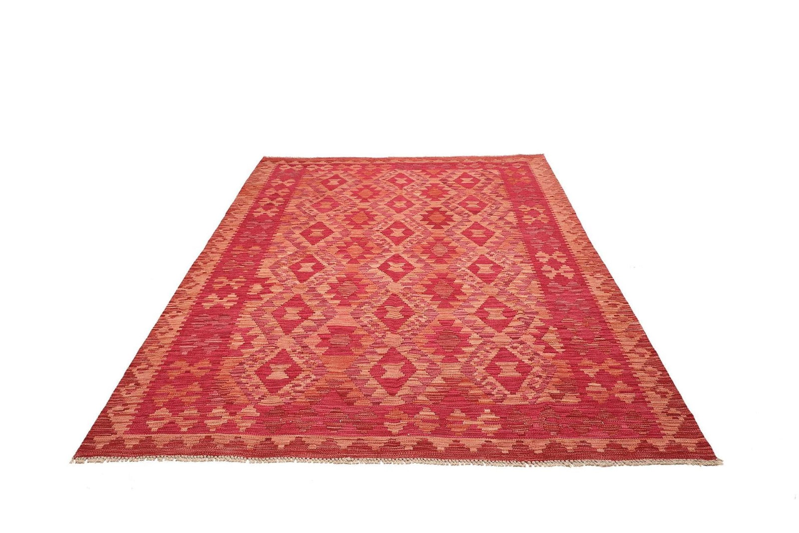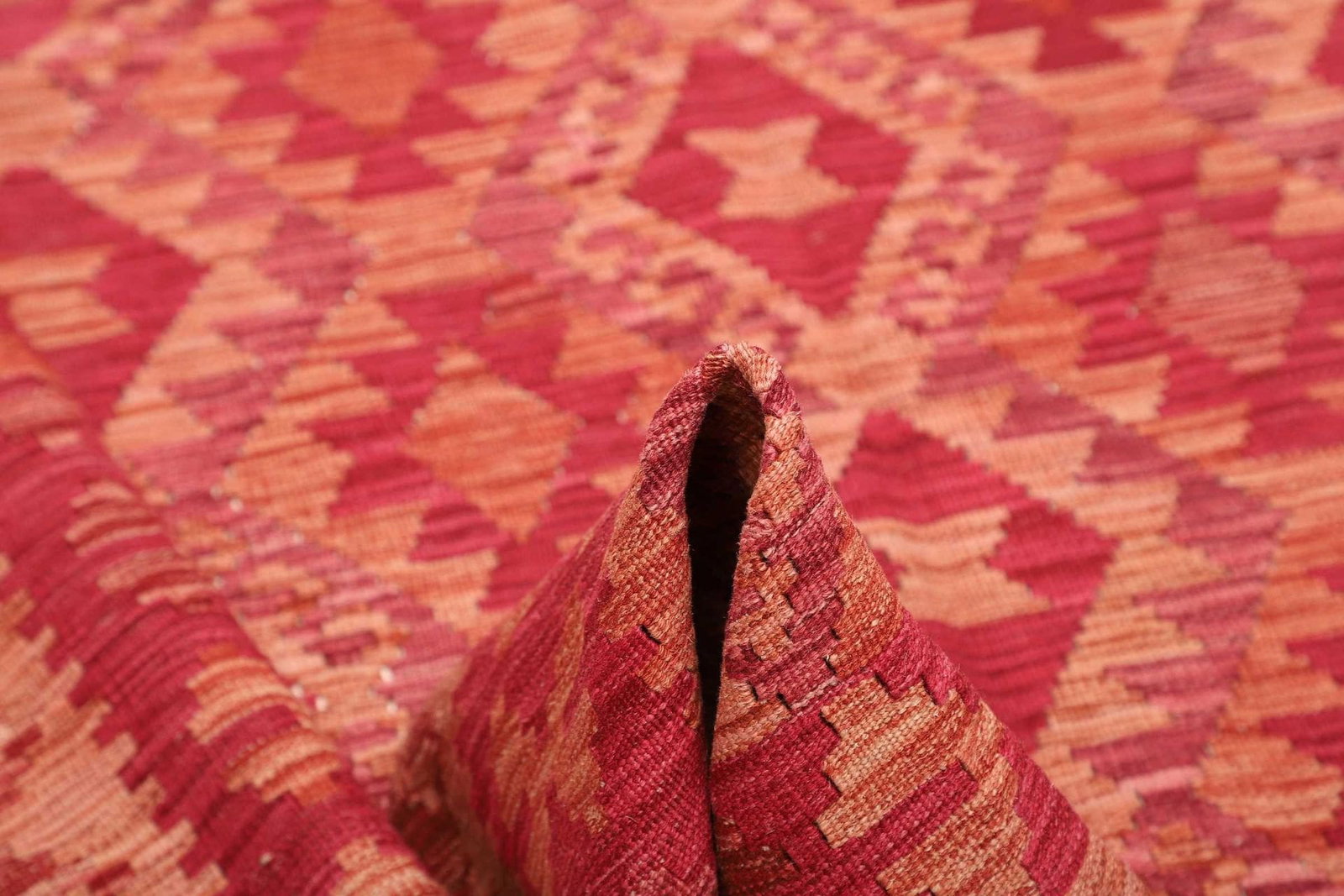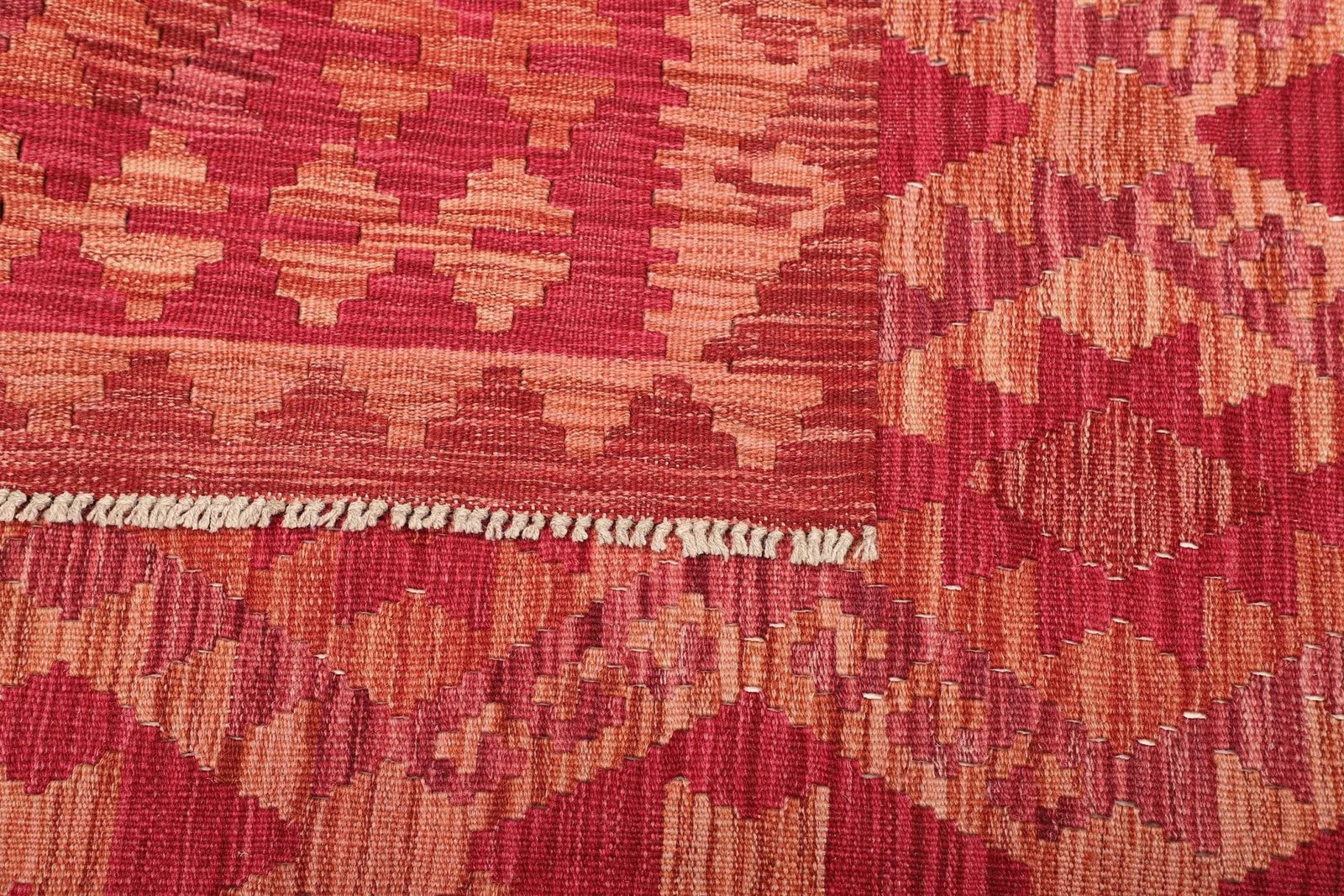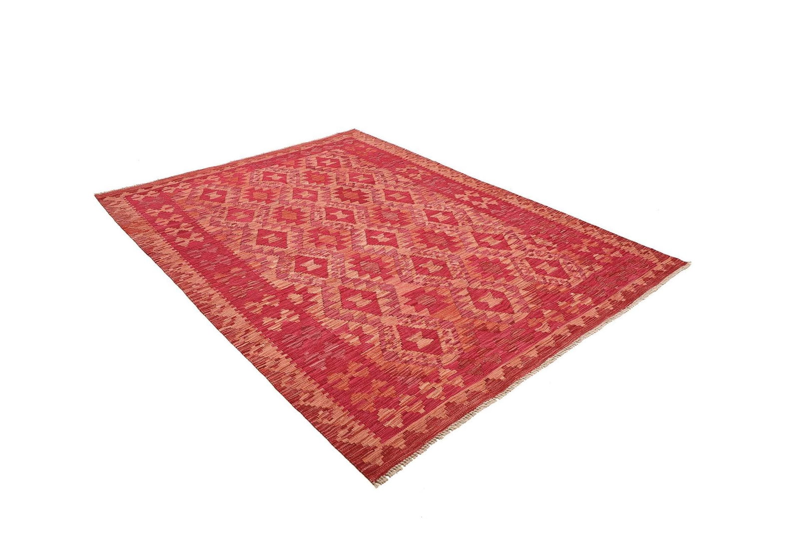 Der Kelim Teppich wird aus 100% Schurwolle hergestellt, die für ihre Langlebigkeit und Robustheit bekannt ist. Schurwolle ist nicht nur äußerst weich und angenehm unter den Füßen, sondern besitzt auch natürliche temperaturregulierende Eigenschaften. Dies sorgt dafür, dass der Teppich zu jeder Jahreszeit ein angenehmes Wohngefühl vermittelt. Die handgewebte Technik macht diesen Teppich einzigartig, da jedes Stück ein individuelles Kunstwerk darstellt, das die Fingerfertigkeit und das handwerkliche Können der Teppichknüpfer widerspiegelt.