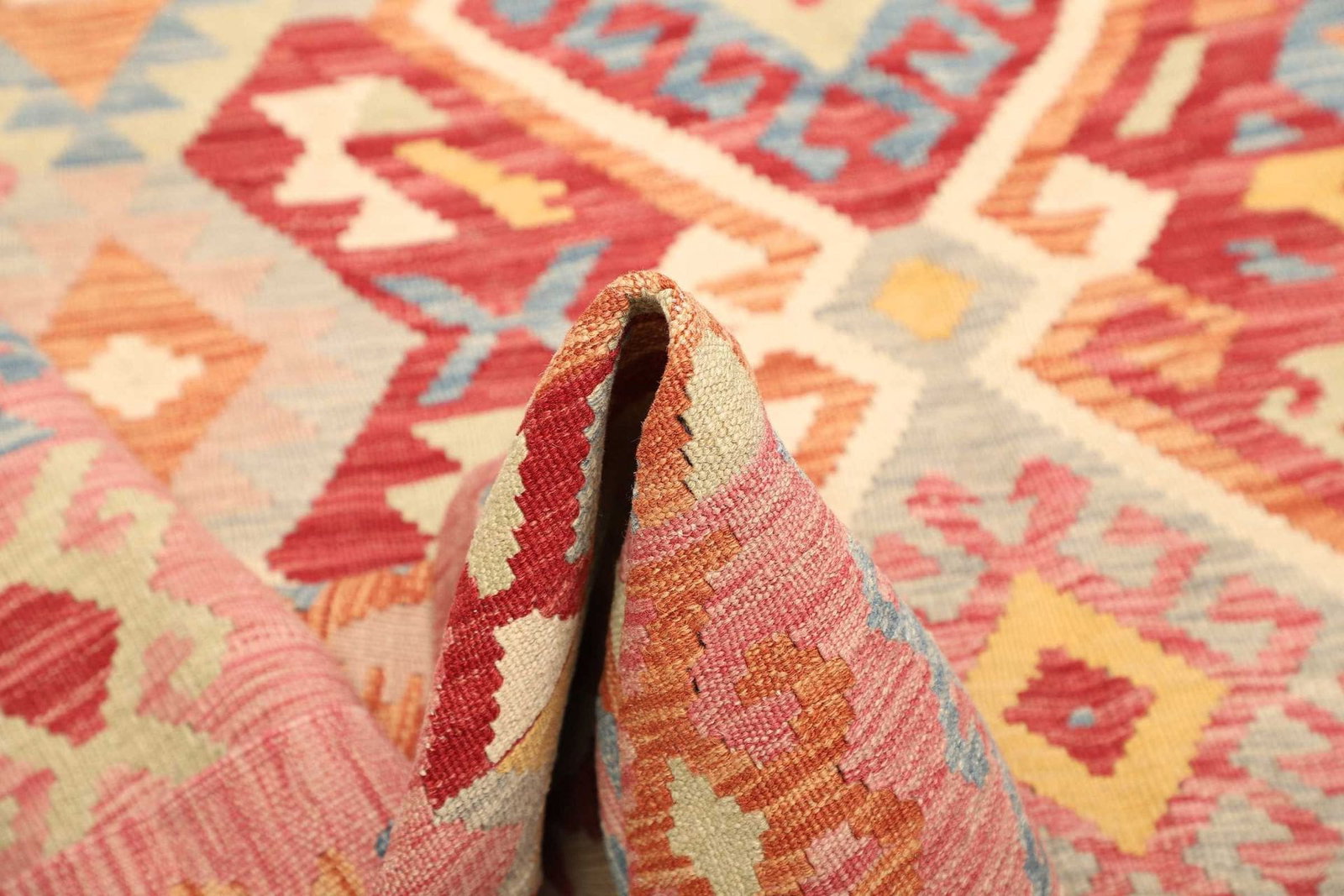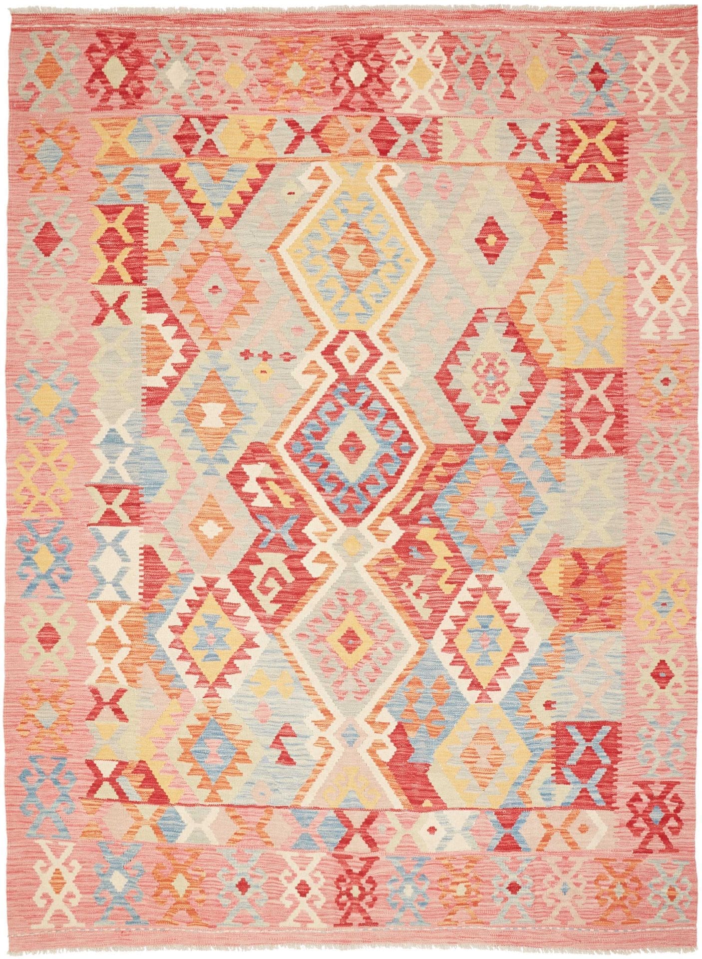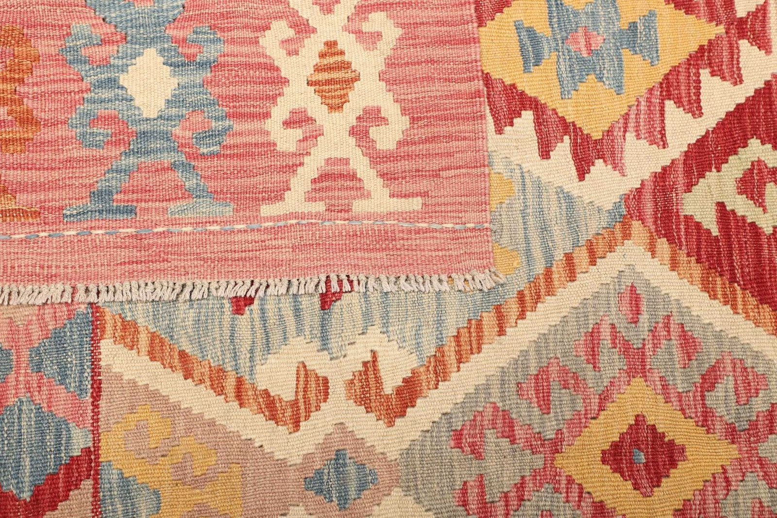 971$ In den WarenkorbKelim 215 x 144 cm – Handgewebt mit identischem Muster auf Vorder- und Rückseite – Orientteppich
