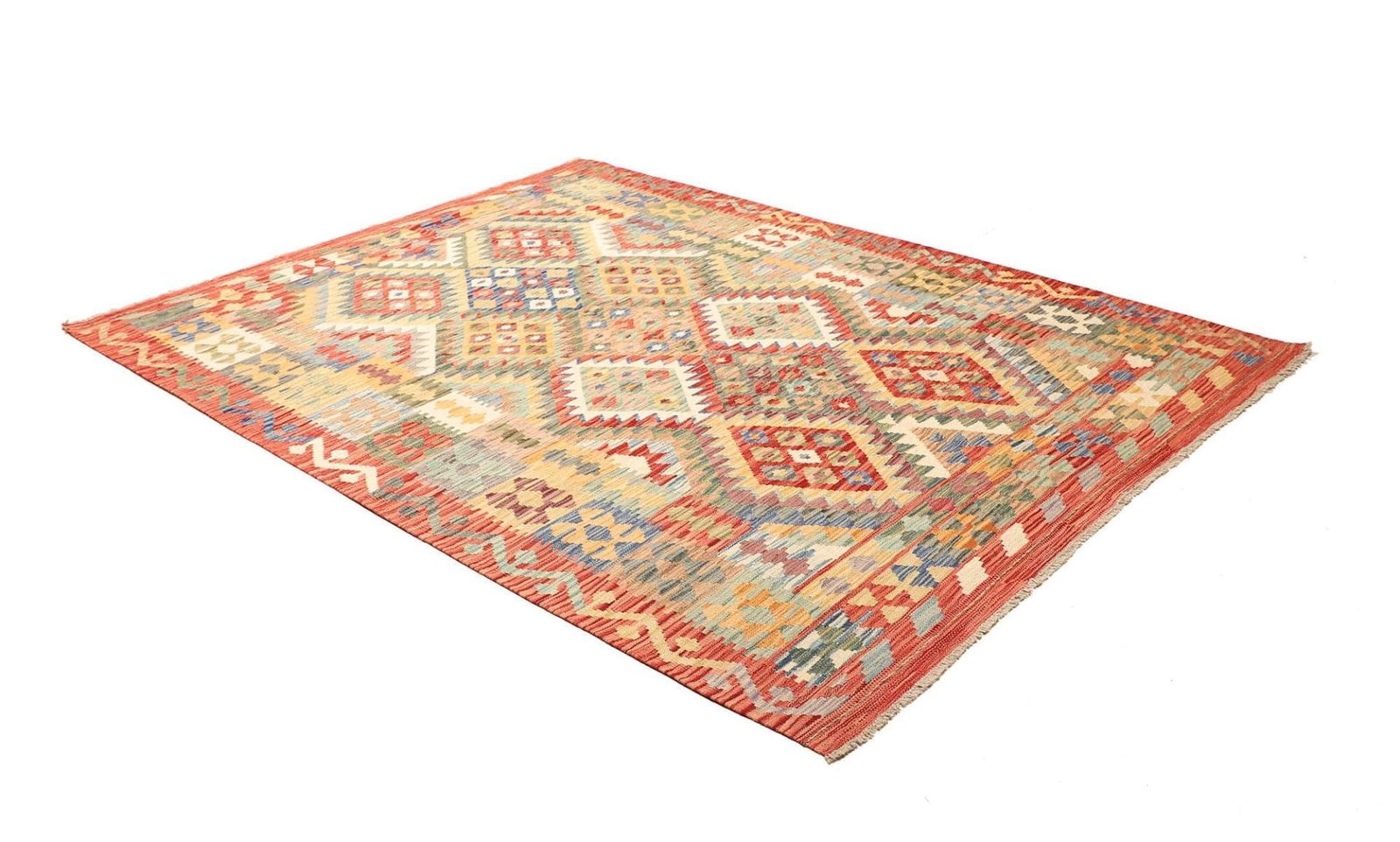 876$ In den WarenkorbKelim 215 x 144 cm – Handgewebt mit identischem Muster auf Vorder- und Rückseite – Orientteppich