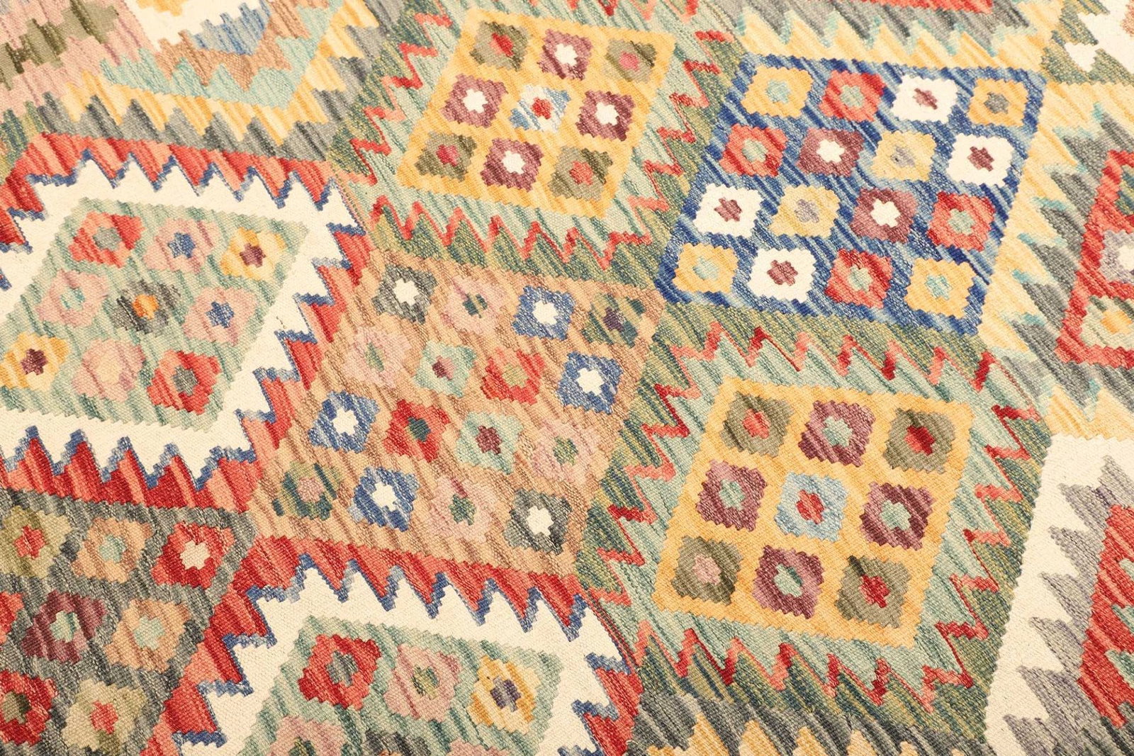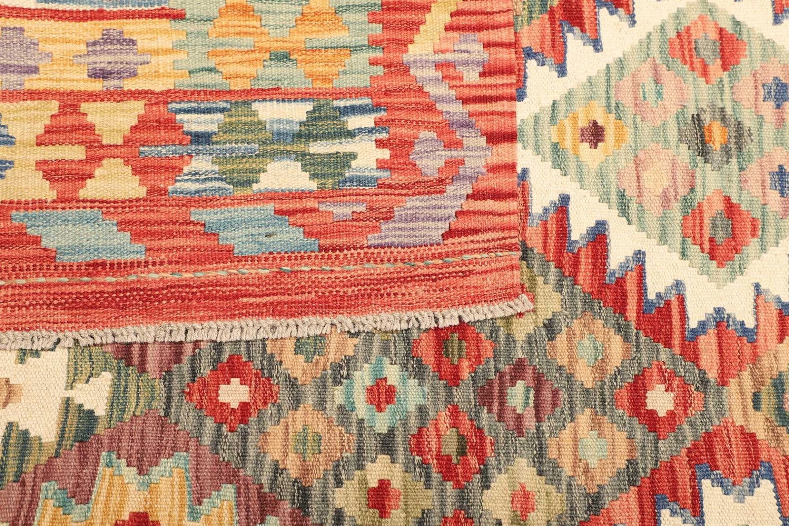 Ein weiterer Vorteil dieses handgewebten Kelim Teppichs ist seine Pflegeleichtigkeit. Schurwolle hat nicht nur natürliche schmutzabweisende Eigenschaften, sondern ist auch einfach zu reinigen. Regelmäßiges Ausklopfen und gelegentliches Staubsaugen sind völlig ausreichend, um die Schönheit des Teppichs langfristig zu erhalten.