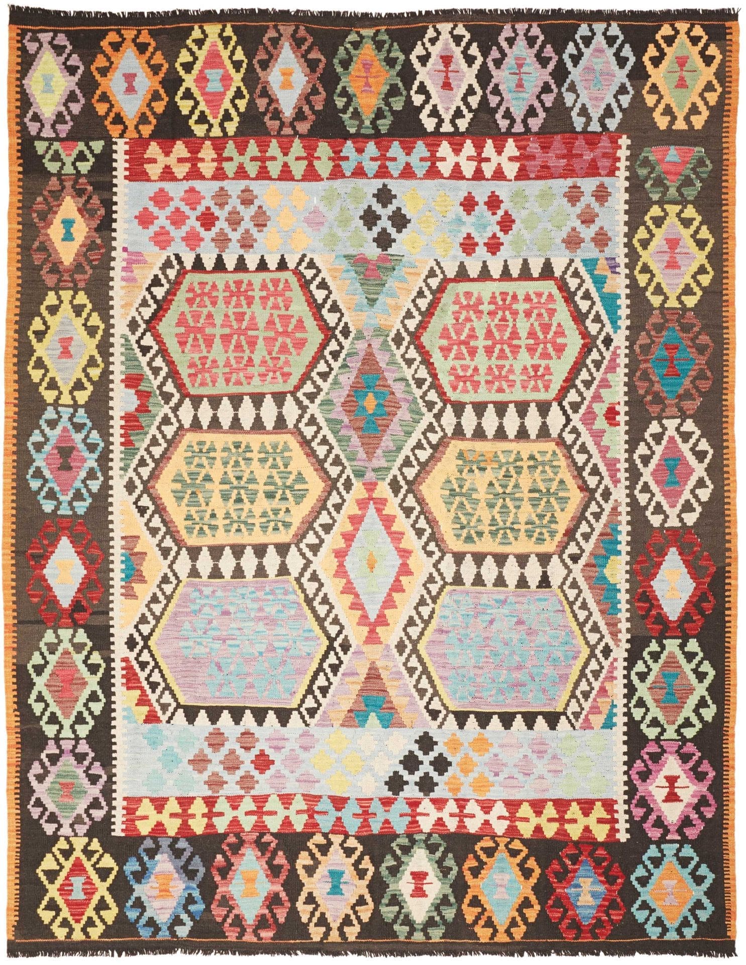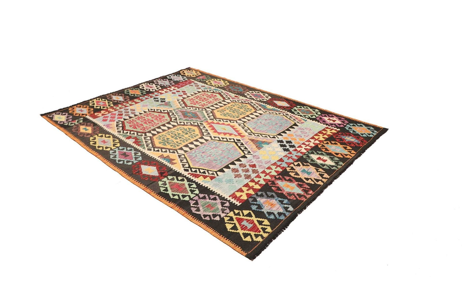 Kelim Teppich | Knotendichte: ca. 200.000 Knoten/m² | Material: 100% Schurwolle und 100% Baumwolle | Größe: 187×233 cm | Höhe: ca. 5 mm | Verarbeitung: Handgewebt | Herkunft: Pakistan | Rustikales Flair für modernes Wohnen