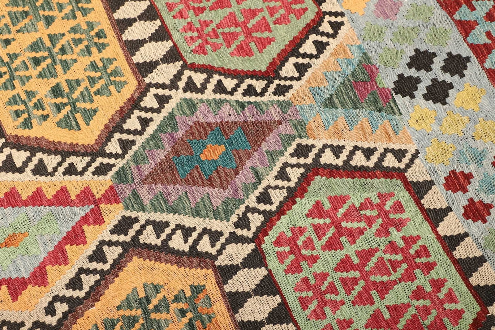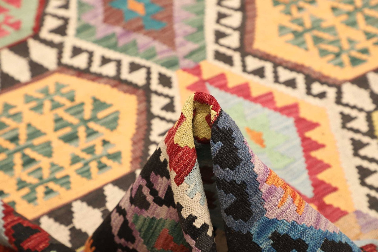 Die Tradition des Kelim-Webens zeichnet sich durch schlichte, geometrische Muster und lebendige Farben aus, die oft symbolische Bedeutungen haben. Die Herstellung dieser Teppiche ist nicht nur eine handwerkliche Fertigung, sondern auch eine Kunstform, die Geschichten und Kriege, Liebe und Frieden widerspiegelt.