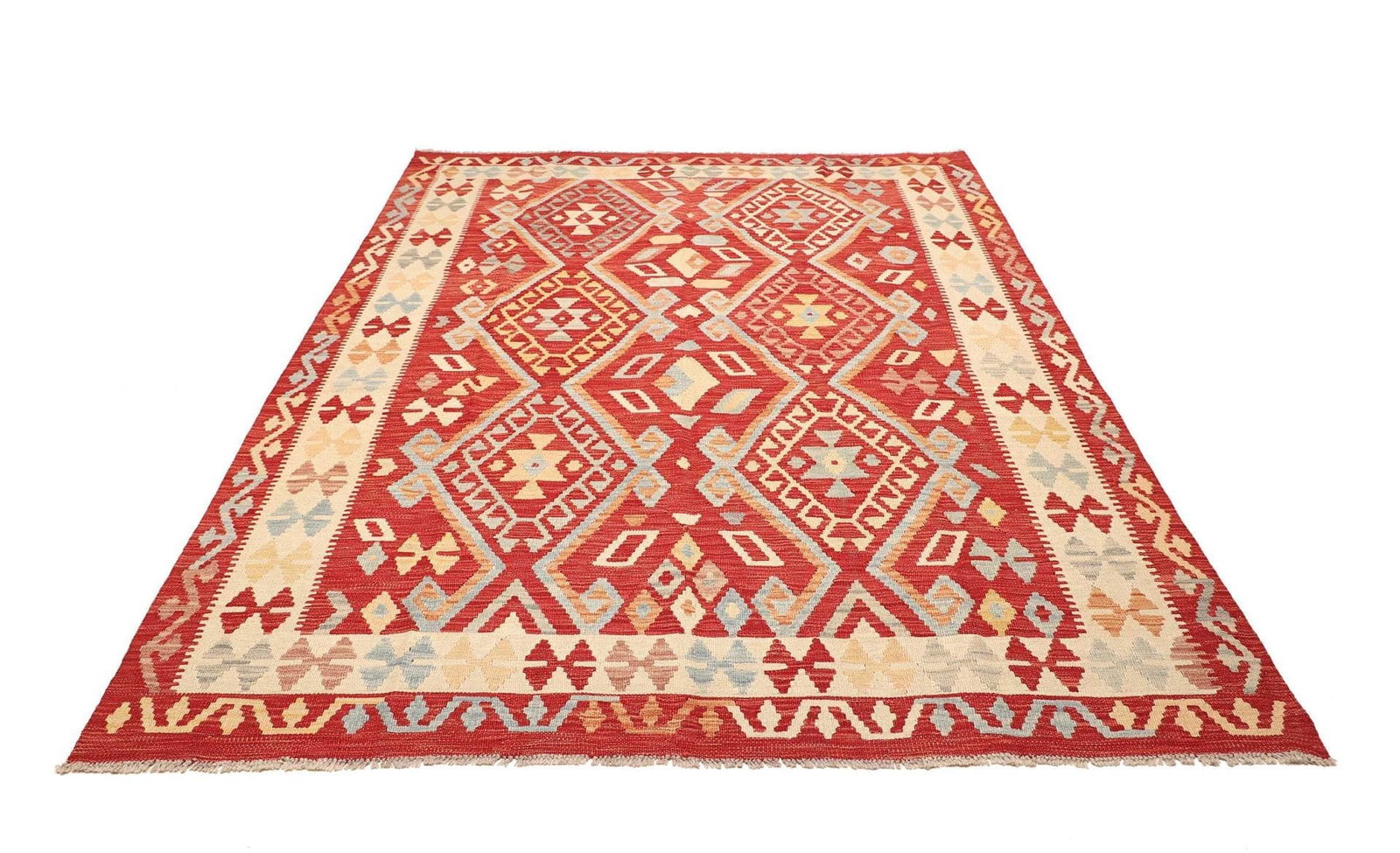 Kelim Teppich | Knotendichte: ca. 200.000 Knoten/m² | Material: 100% Schurwolle (Flor), 100% Baumwolle (Kette) | Größe: 187×236 cm | Herkunft: Pakistan | Handgewebte Qualität | Rustikales Flair für moderne Einrichtungen