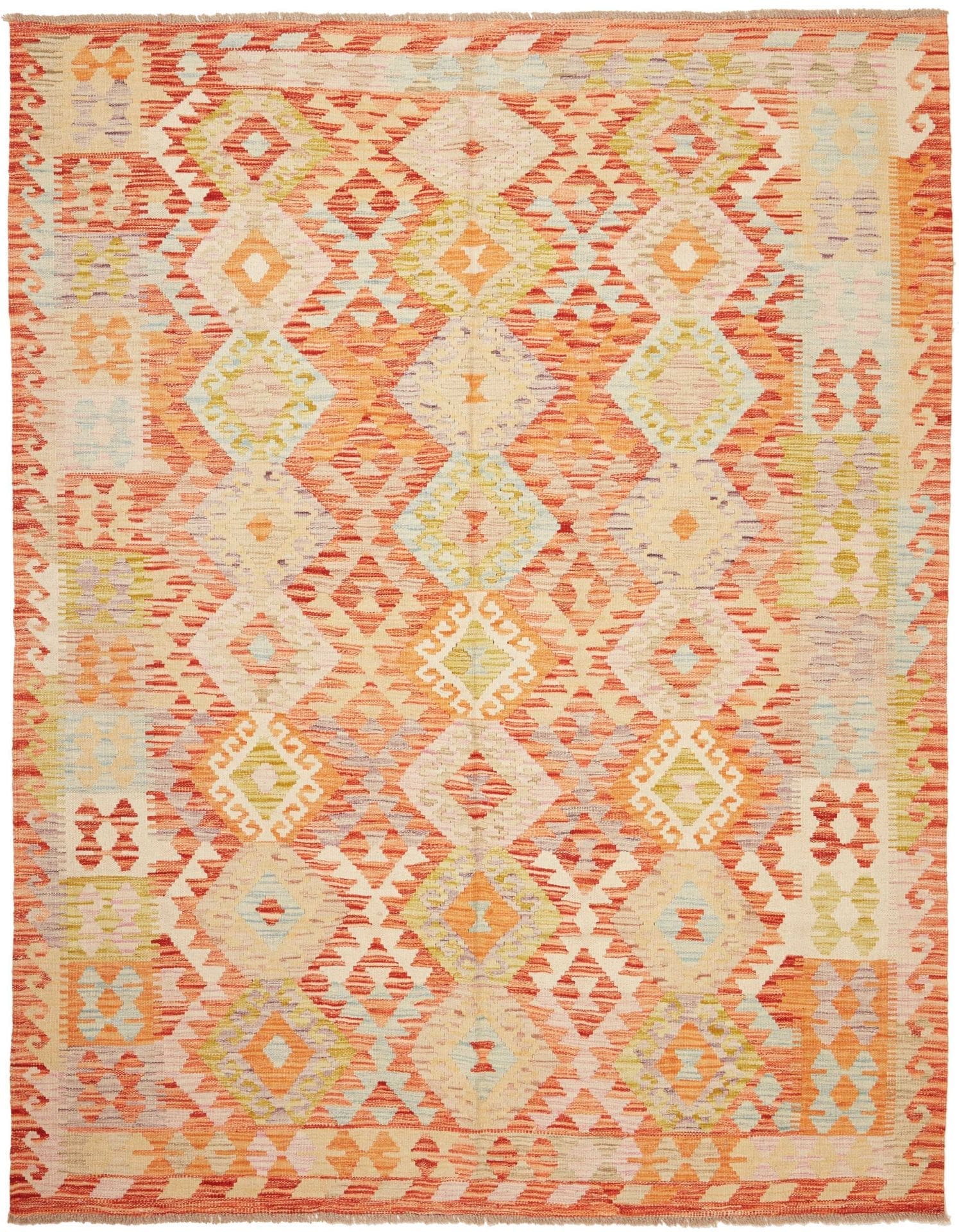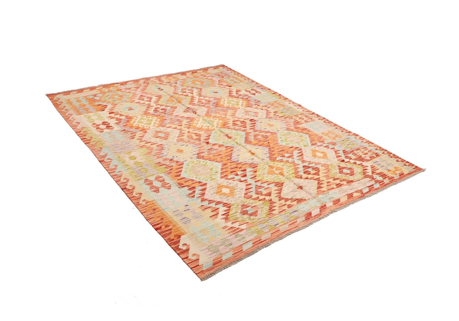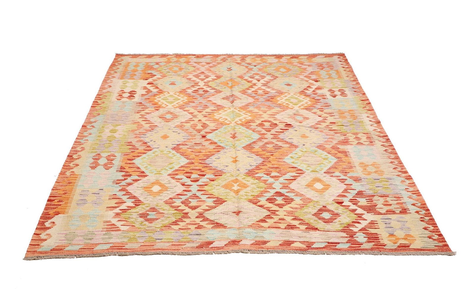 Kelim Teppich | Größe: 187 x 239 cm | Herkunft: Pakistan | Knotendichte: ca. 200.000 Knoten/m² | Flor: 100% Schurwolle | Kette: 100% Baumwolle | Höhe: ca. 5 mm | Handgewebte Qualität, vielseitig einsetzbar