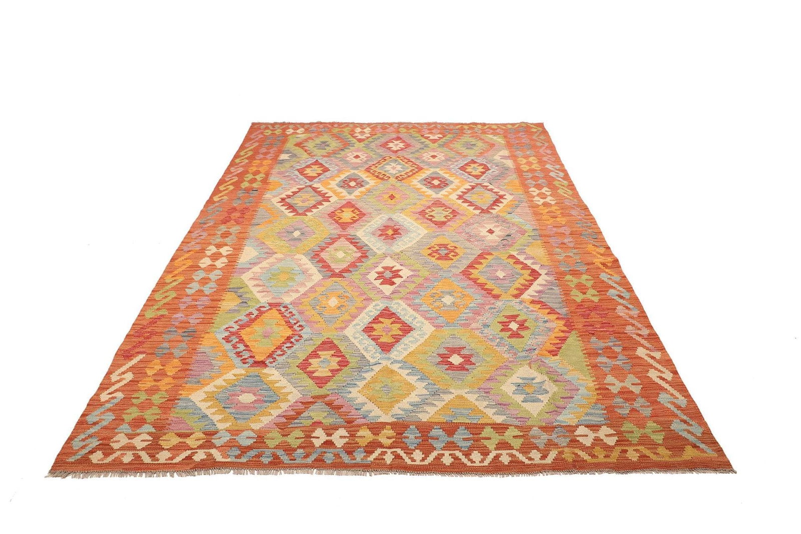 Kelim Teppich | Knotendichte: ca. 200.000 Knoten/m² | Material: 100% Schurwolle | Größe: 187×251 cm | Zustand: Handgewebte Qualität | Herkunft: Pakistan | Florhöhe: ca. 5 mm | Kette: 100% Baumwolle