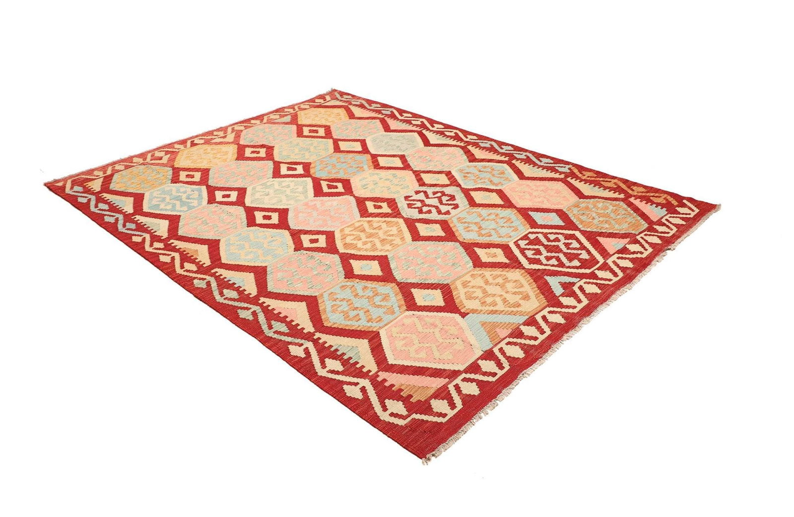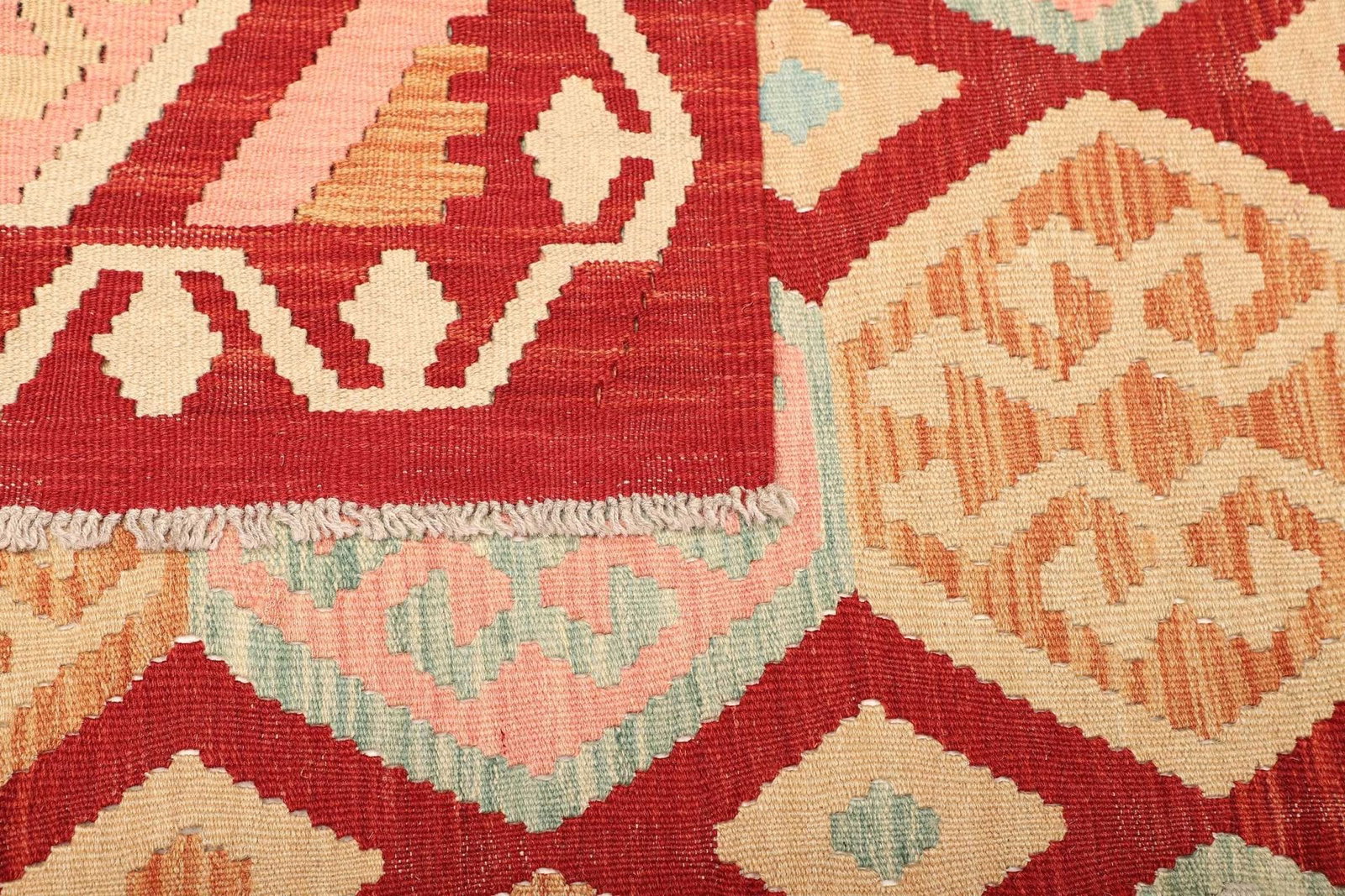 482$ In den WarenkorbKelim 215 x 144 cm – Handgewebt mit identischem Muster auf Vorder- und Rückseite – Orientteppich