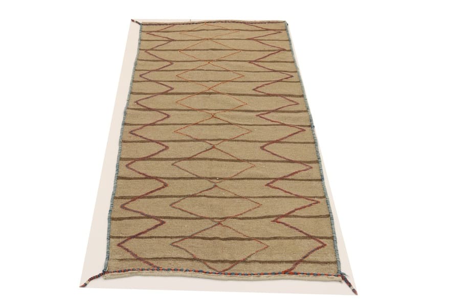 1945$ In den WarenkorbHandgewebter Ghashgai Kelim Teppich aus Wolle in Naturfarbe – 290 x 200 cm