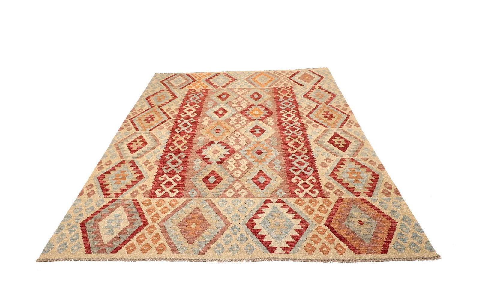 Kelim Teppich 191 x 240cm aus Schurwolle, handgewebt, rustikal