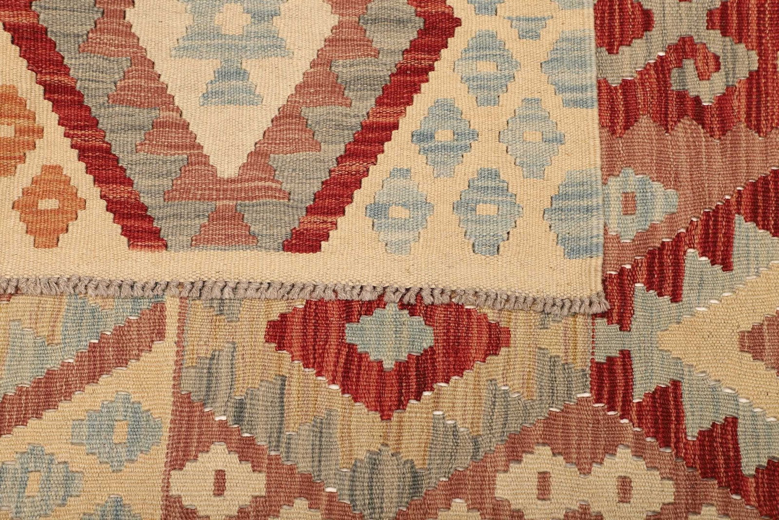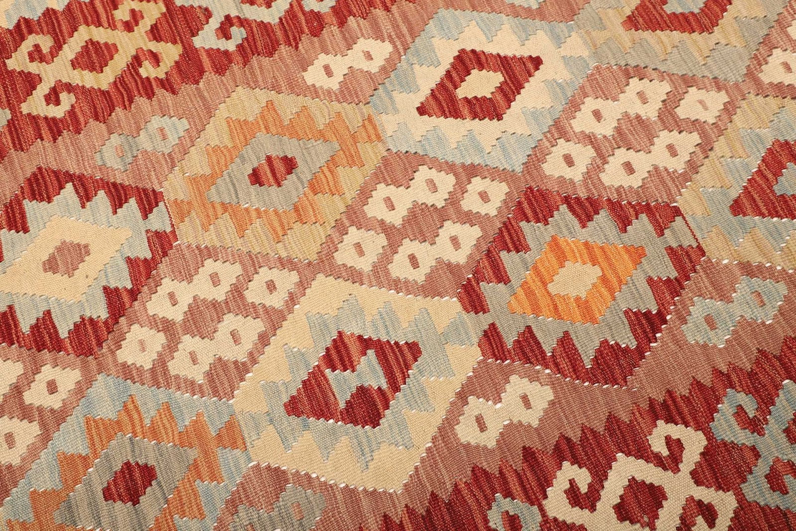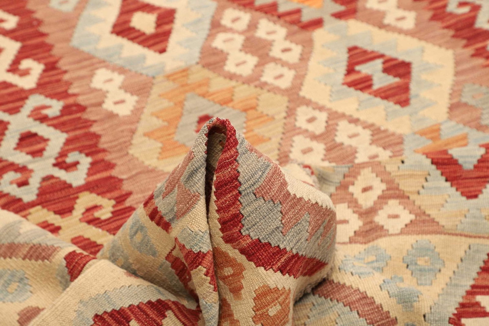 Der handgewebte Kelim Teppich zeichnet sich durch seine Verwendung von 100% Schurwolle, die hohe Knotendichte und die traditionellen Muster aus, die sein einzigartiges Erscheinungsbild prägen. Jedes Stück ist ein Unikat und trägt die Handschrift seiner Tradition und Kultur.