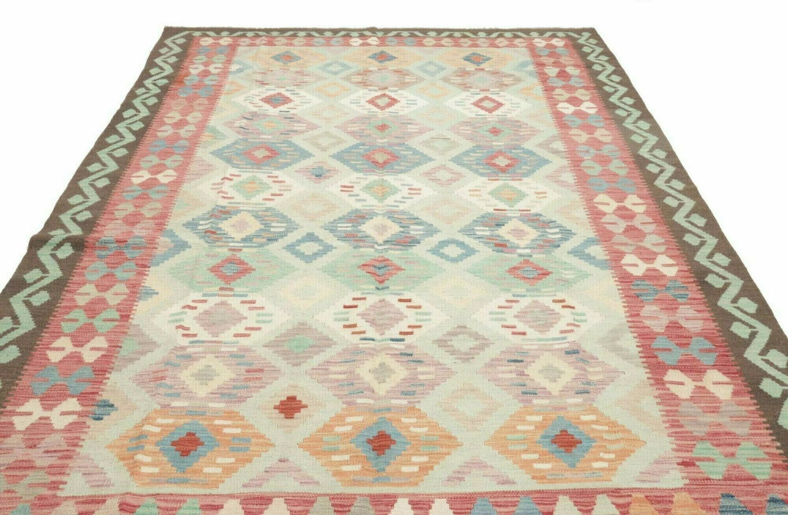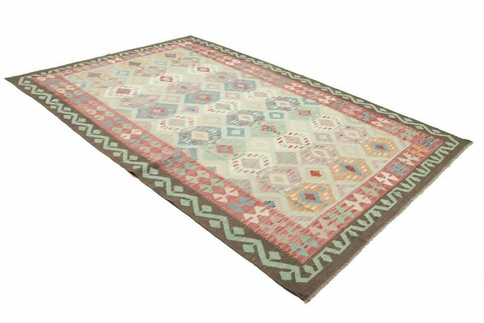 Kelim Teppich | Knotendichte: ca. 200.000 Knoten/m² | Material: 100% Schurwolle (Flor), 100% Baumwolle (Kette) | Größe: 195 x 292 cm | Handgewebte Qualität | Herkunft: Pakistan | Höhe: ca. 5mm | Ideal für moderne und rustikale Einrichtungen
