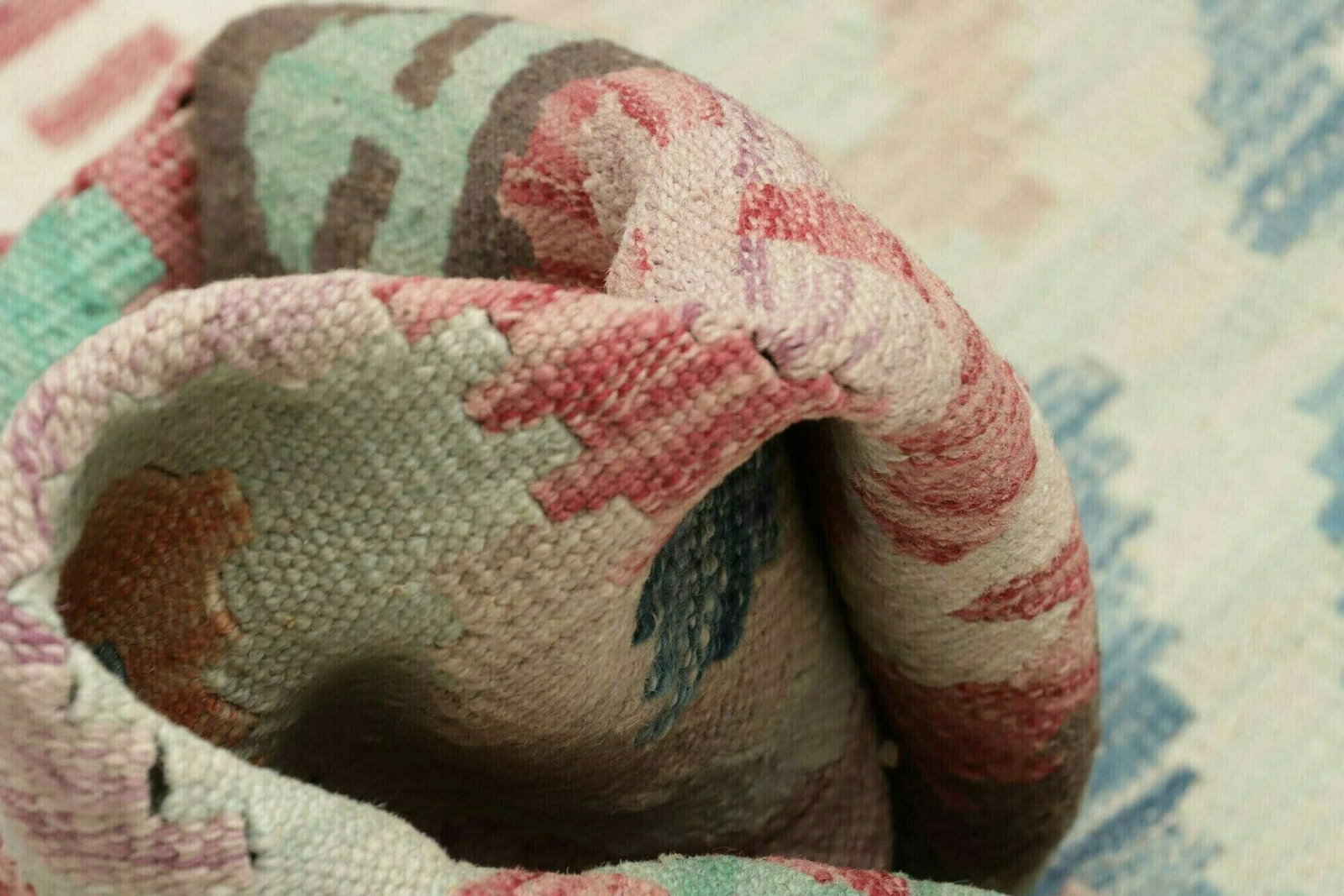 Die handgewebte Technik des Kelims gewährleistet eine besondere Strapazierfähigkeit und Langlebigkeit. Im Gegensatz zu handgeknüpften Teppichen ist die Kelimteppich-Technik einzigartig, da hierbei kein Flor entsteht, sondern das Muster durch eine spezielle Webtechnik direkt auf den Grundstoff gewebt wird. Dies schafft einen robusten Teppich, der in jedem Raum zur Geltung kommt.