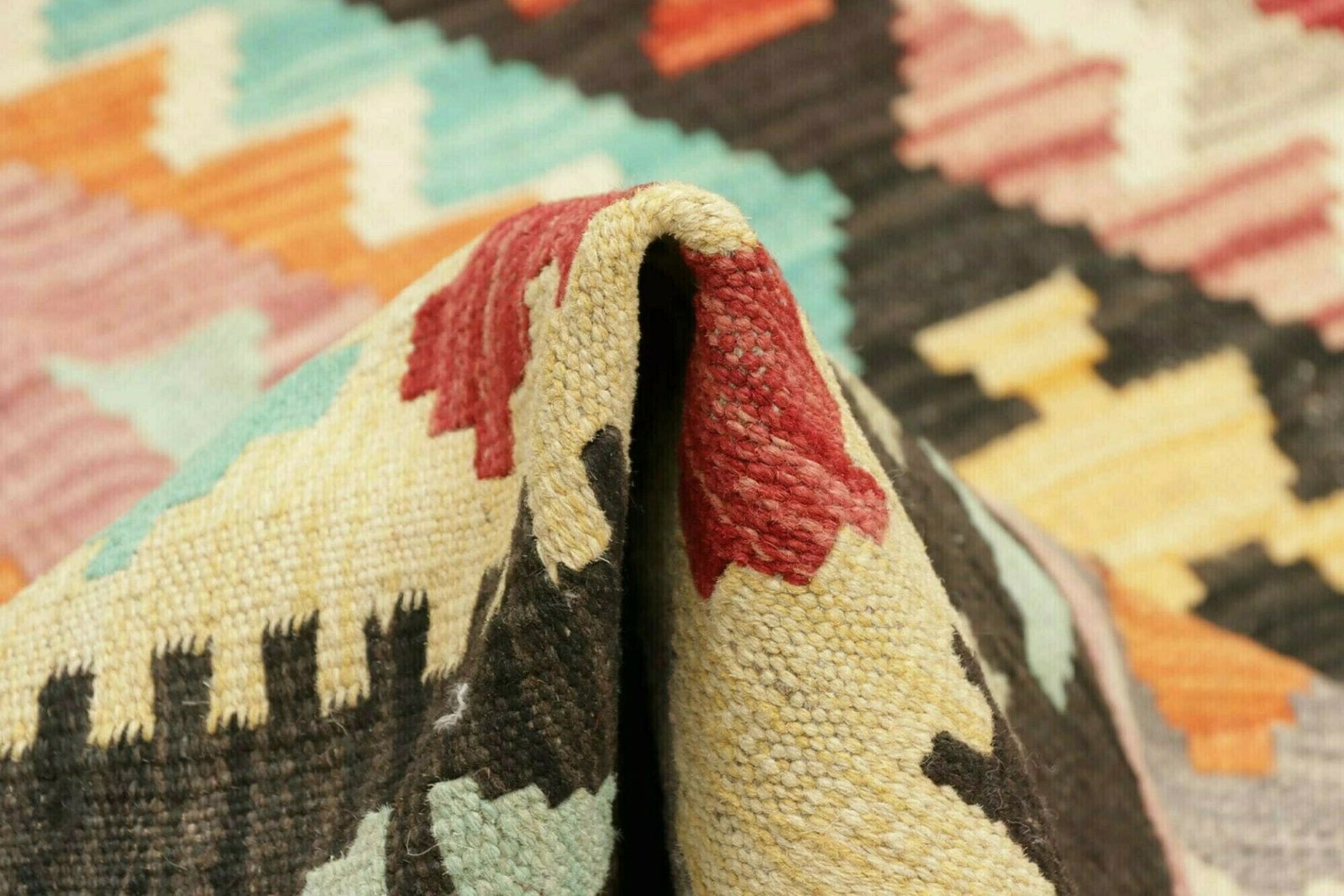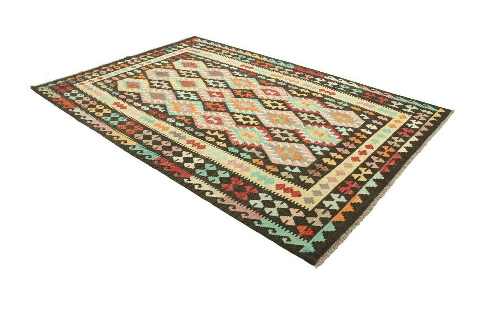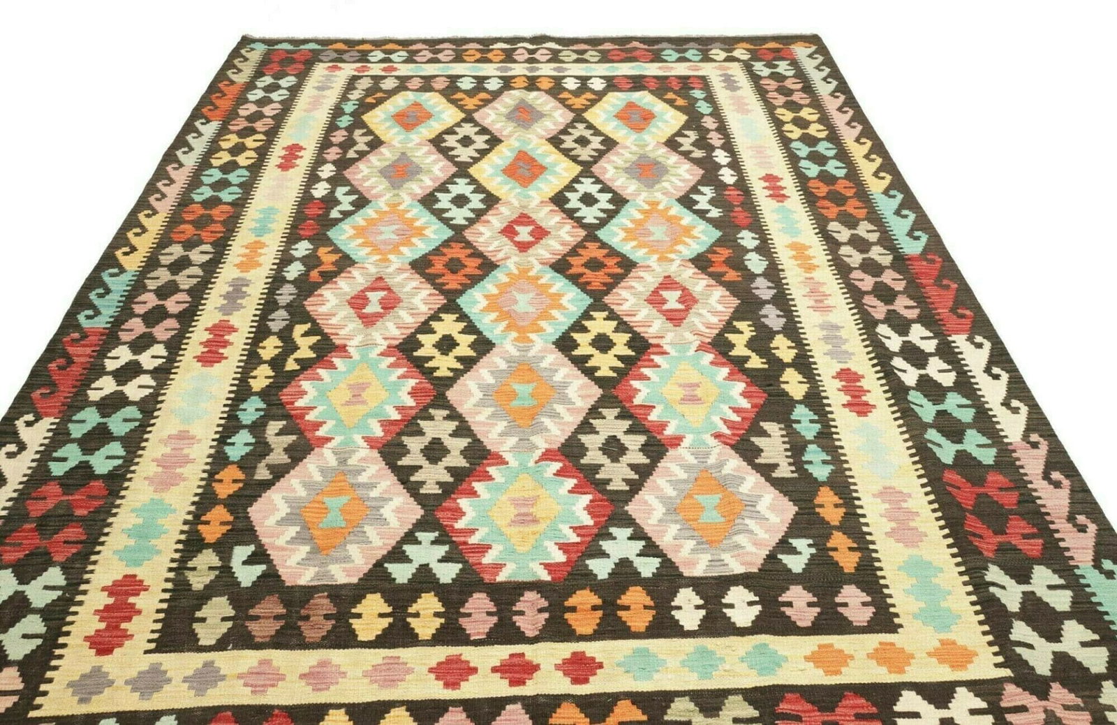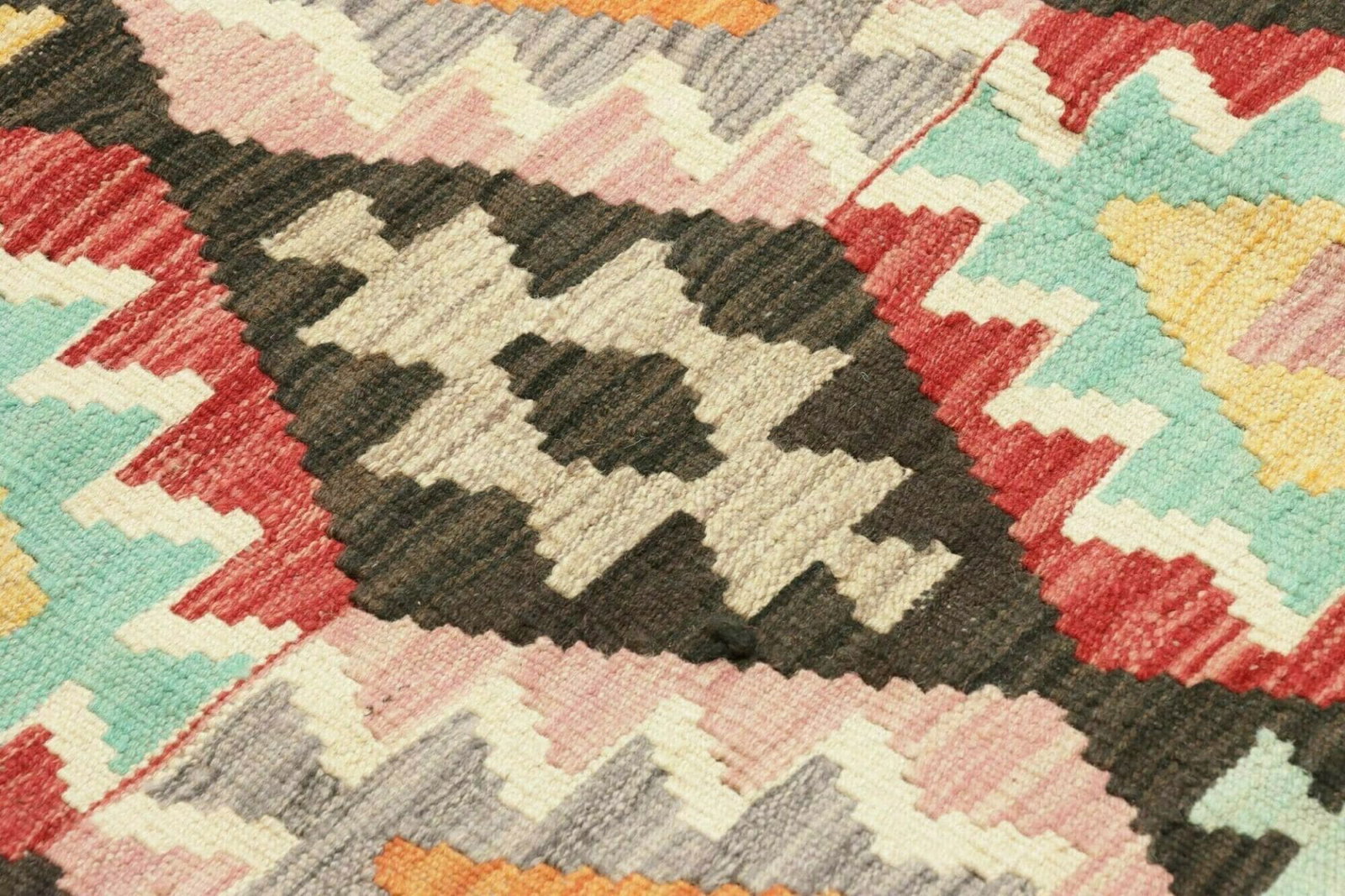 Kelim Teppich | Knotendichte: ca. 200.000 Knoten/m² | Material: 100% Schurwolle (Flor), 100% Baumwolle (Kette) | Größe: 197×294 cm | Zustand: Handgewebt | Herkunft: Pakistan | Höhe: ca. 5 mm