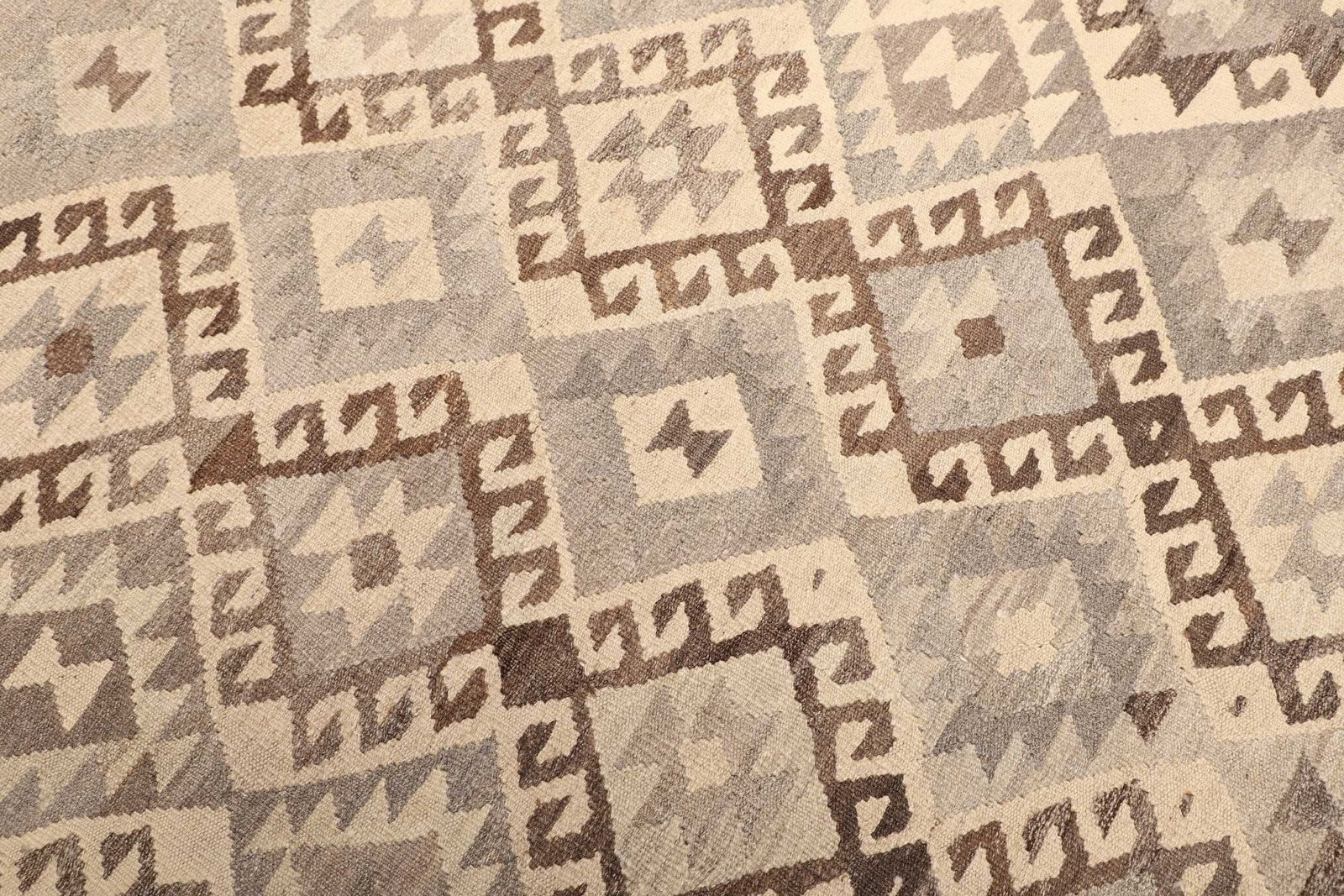 Der Kelim Teppich ist aus hochwertigen Materialien gefertigt, die sowohl Langlebigkeit als auch ein angenehmes Tragegefühl garantieren. Die Verwendung von natürliche Wolle verleiht dem Teppich seine weiche Textur sowie die widerstandsfähigen Eigenschaften, die für das tägliche Leben notwendig sind. Die Handwebtechnik sorgt für eine ausgezeichnete Knotendichte, die dem Teppich nicht nur eine besondere Stabilität verleiht, sondern auch seine einzigartige Optik unterstreicht. Als handgewebter Teppich ist er ein Beispiel für die hervorragende Handwerkskunst, die in der Teppichproduktion angewendet wird.