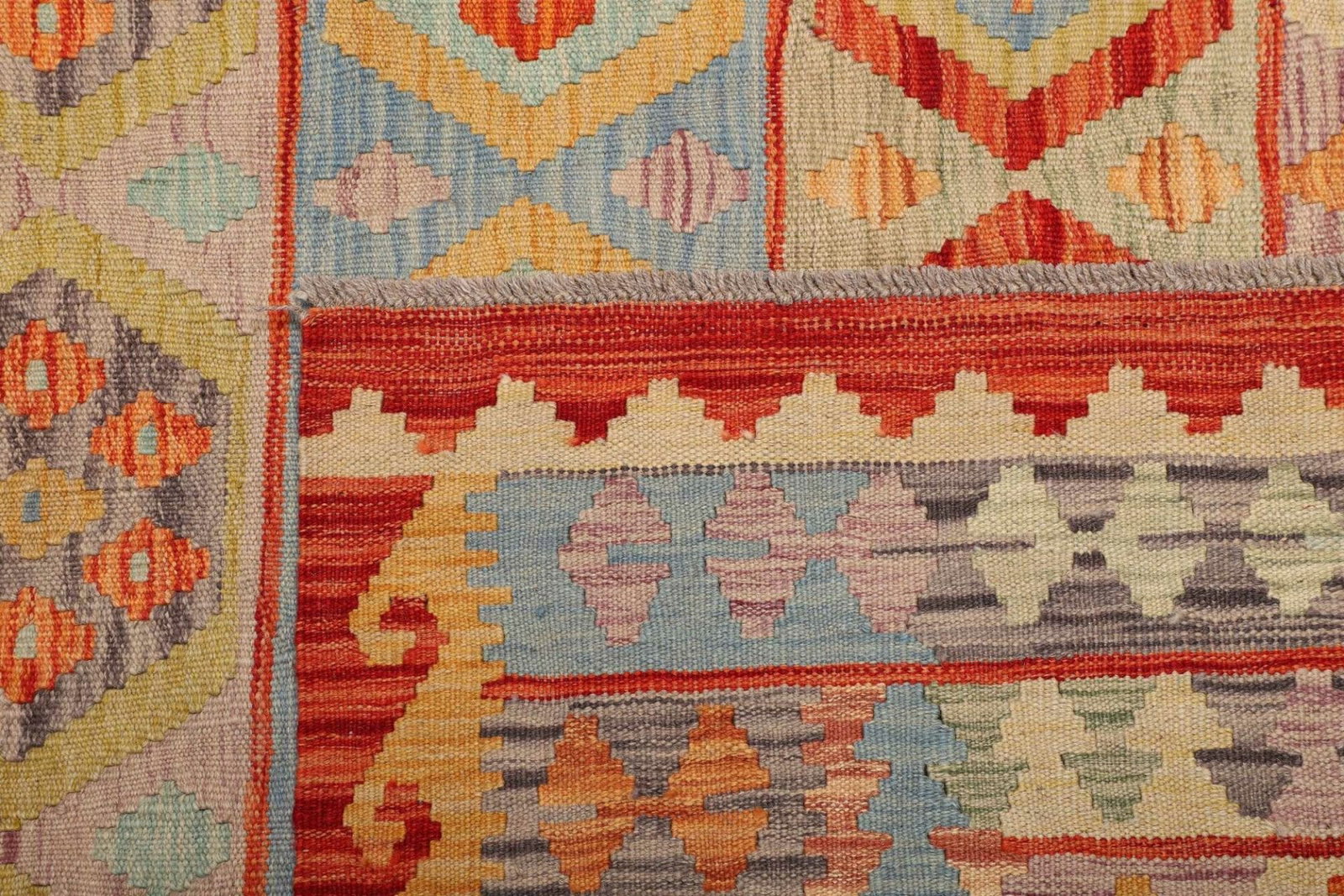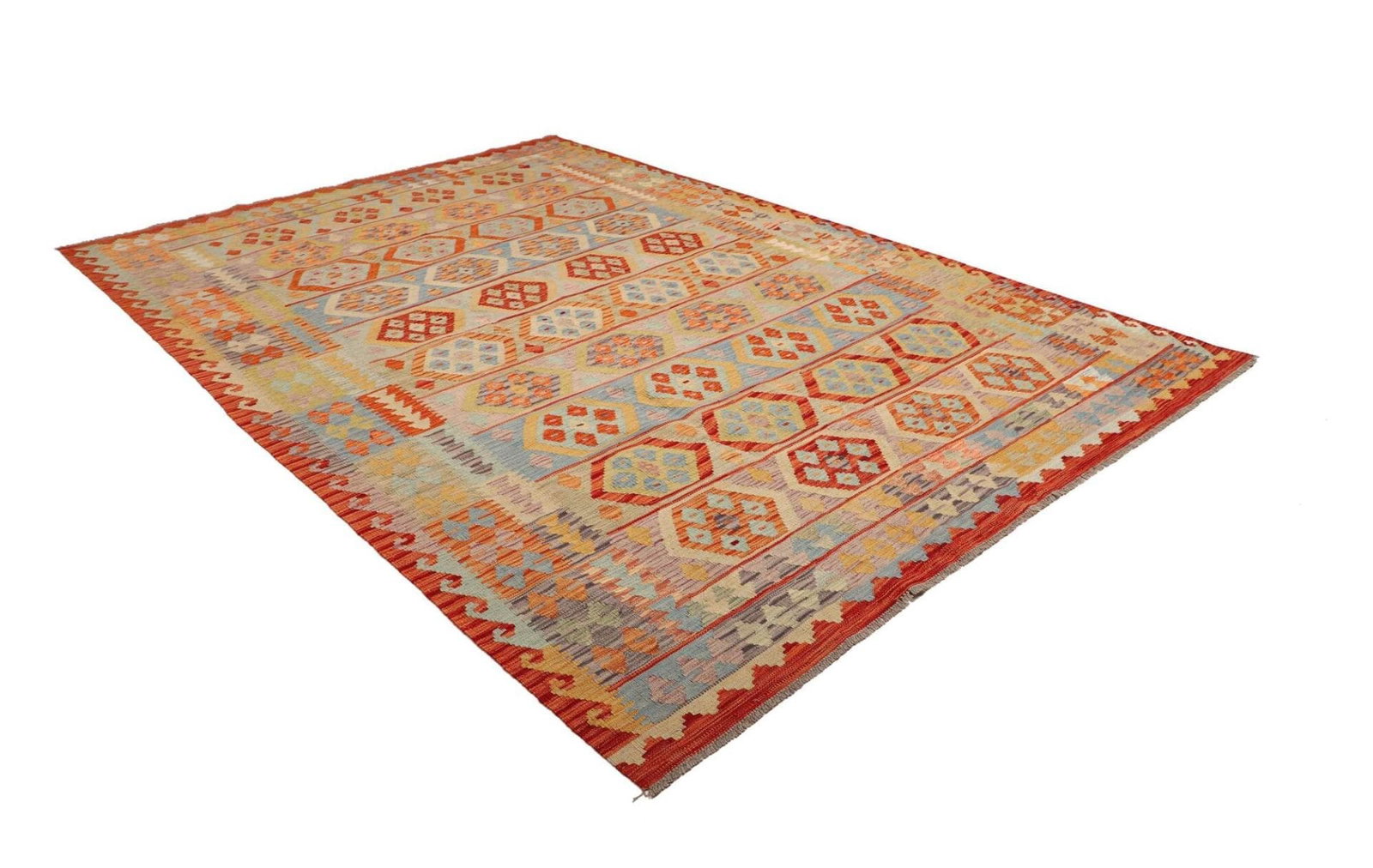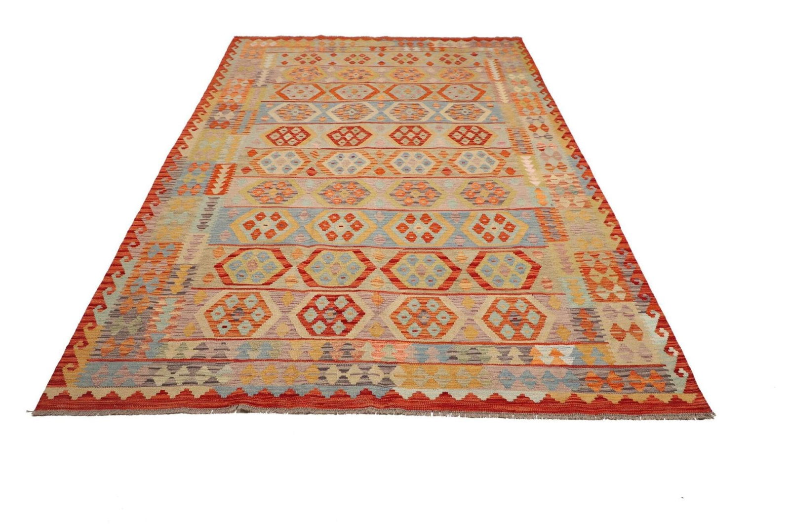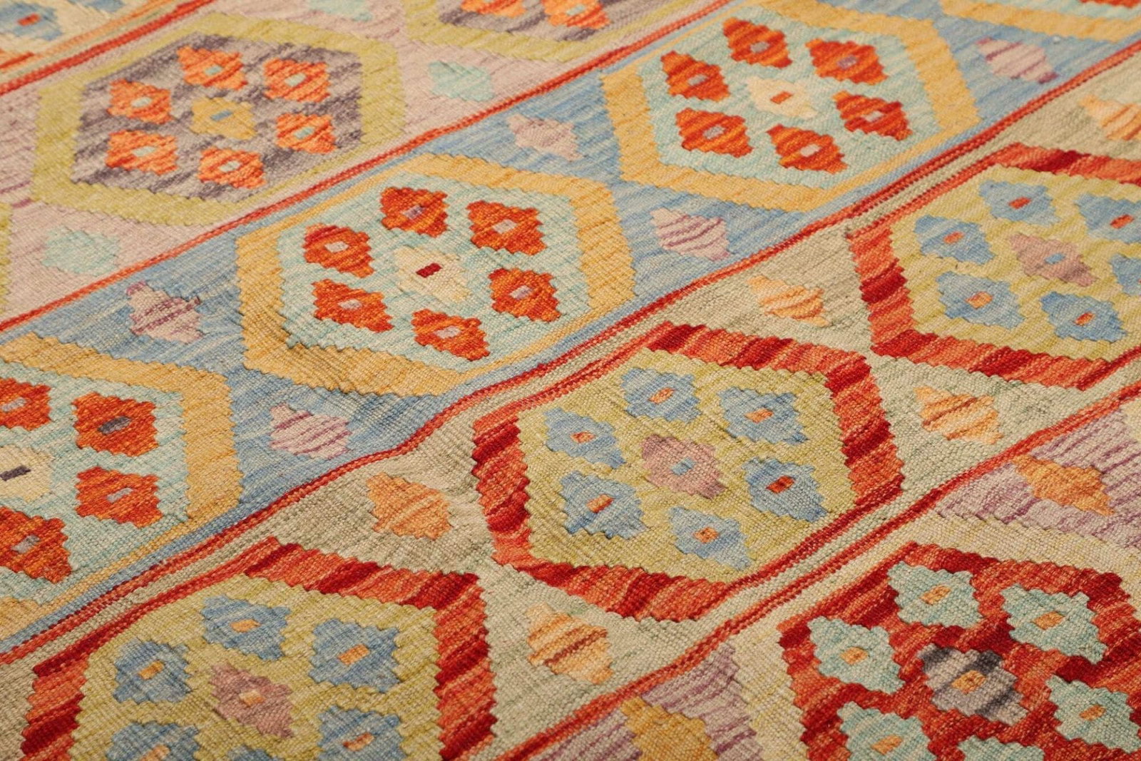 Kelim Teppich | Knotendichte: ca. 200.000 Knoten/m² | Material: 100% Schurwolle | Größe: 202×292 cm | Zustand: Handgewebte Qualität | Herkunft: Pakistan | Florhöhe: ca. 5mm | Kette: 100% Baumwolle