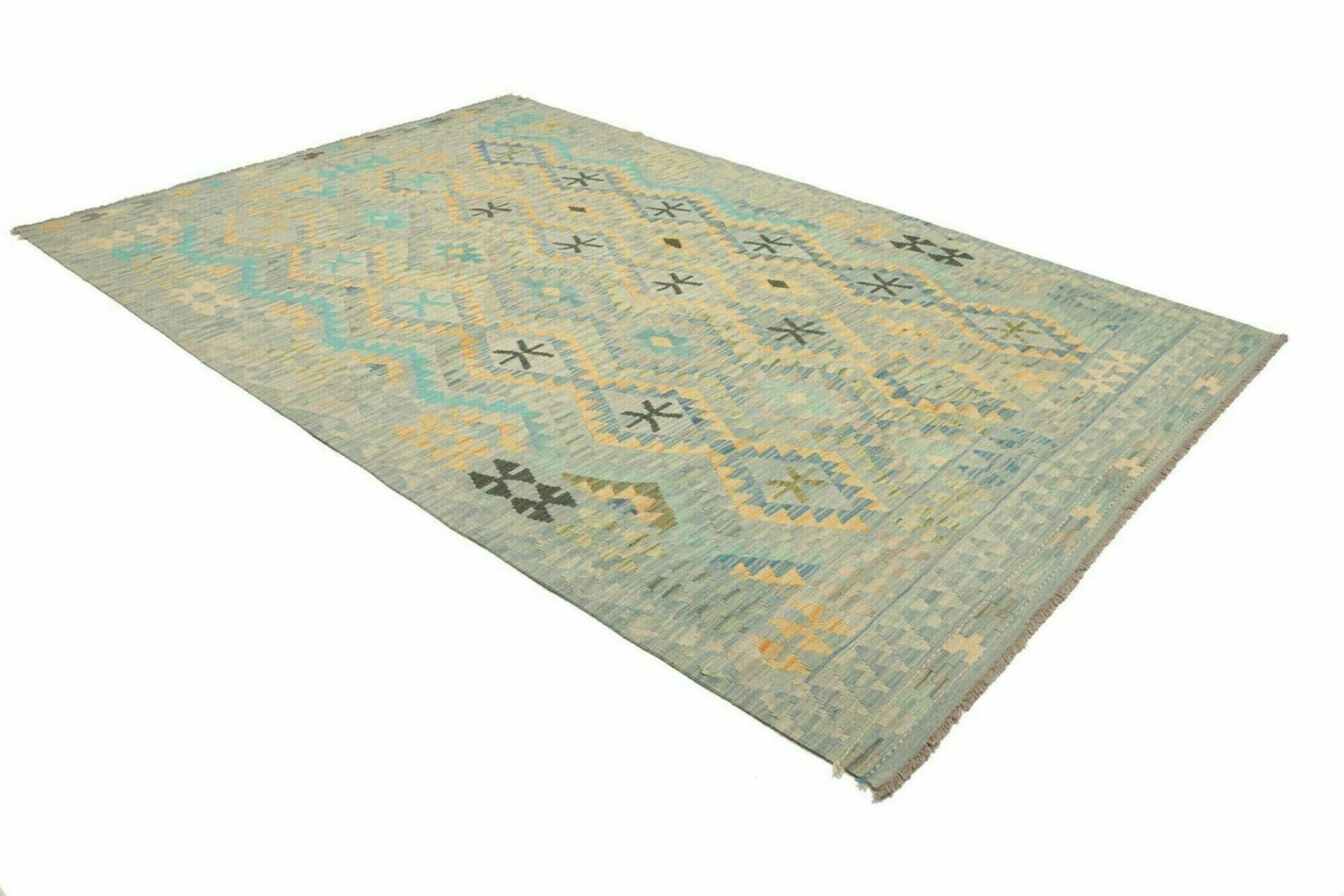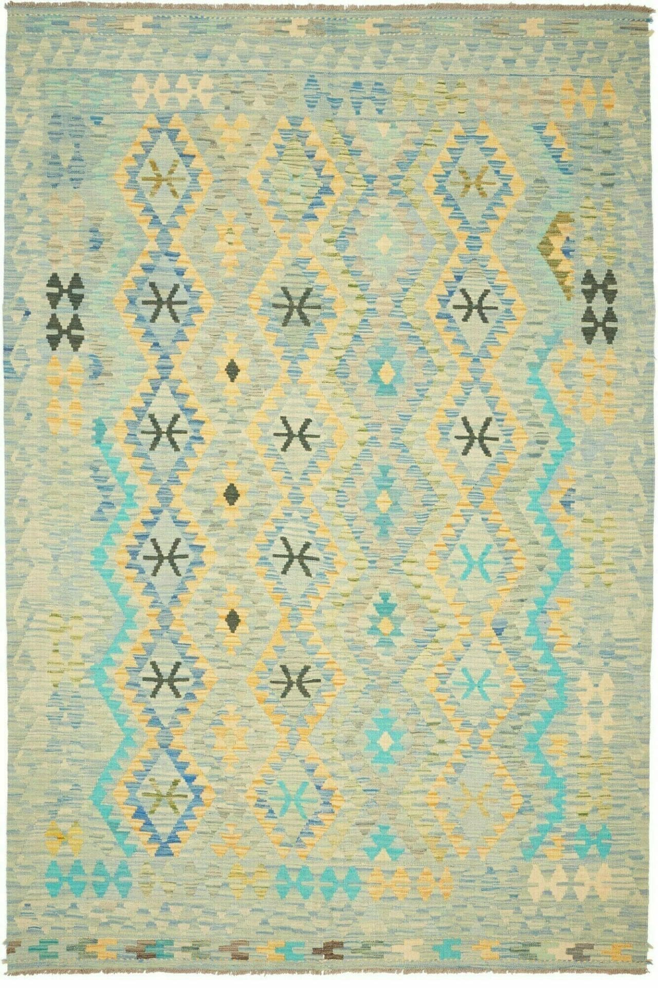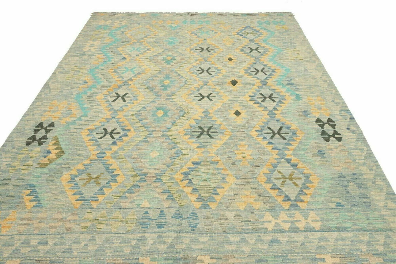1022$Ursprünglicher Preis war: 1022$842$Aktueller Preis ist: 842$Kelim Teppich | Knotendichte: ca. 200.000 Knoten/m² | Material: 100% Schurwolle | Größe: 202 x 307 cm | Herkunft: Pakistan | Zustand: Handgewebt | Hohe Strapazierfähigkeit durch Baumwollkette