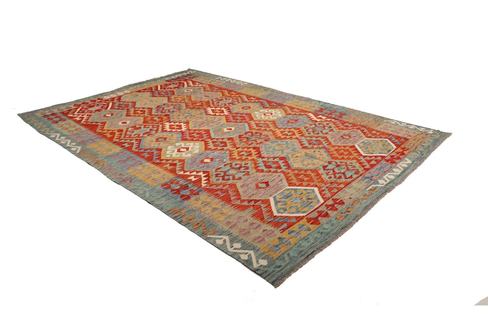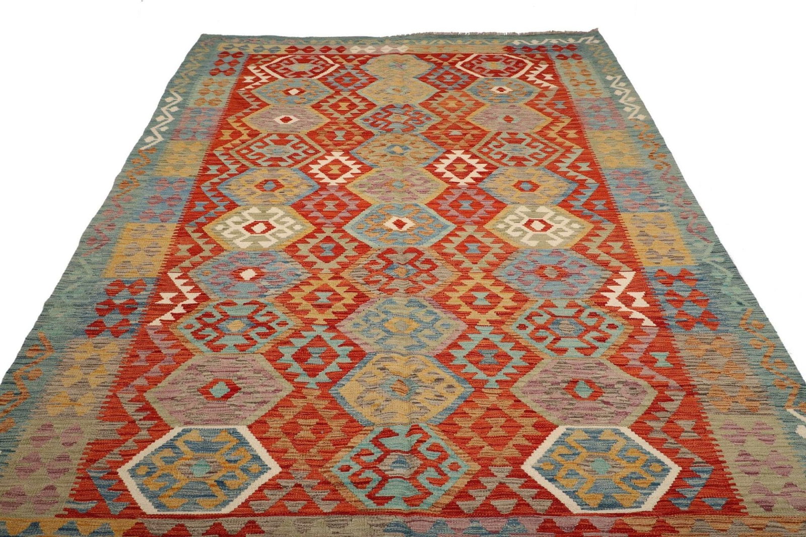 971$ In den WarenkorbKelim 206 x 145 cm – Gewebt mit identischen Mustern auf Vorder- und Rückseite, ideal als Wandbehang, handgewebt, Orientteppich