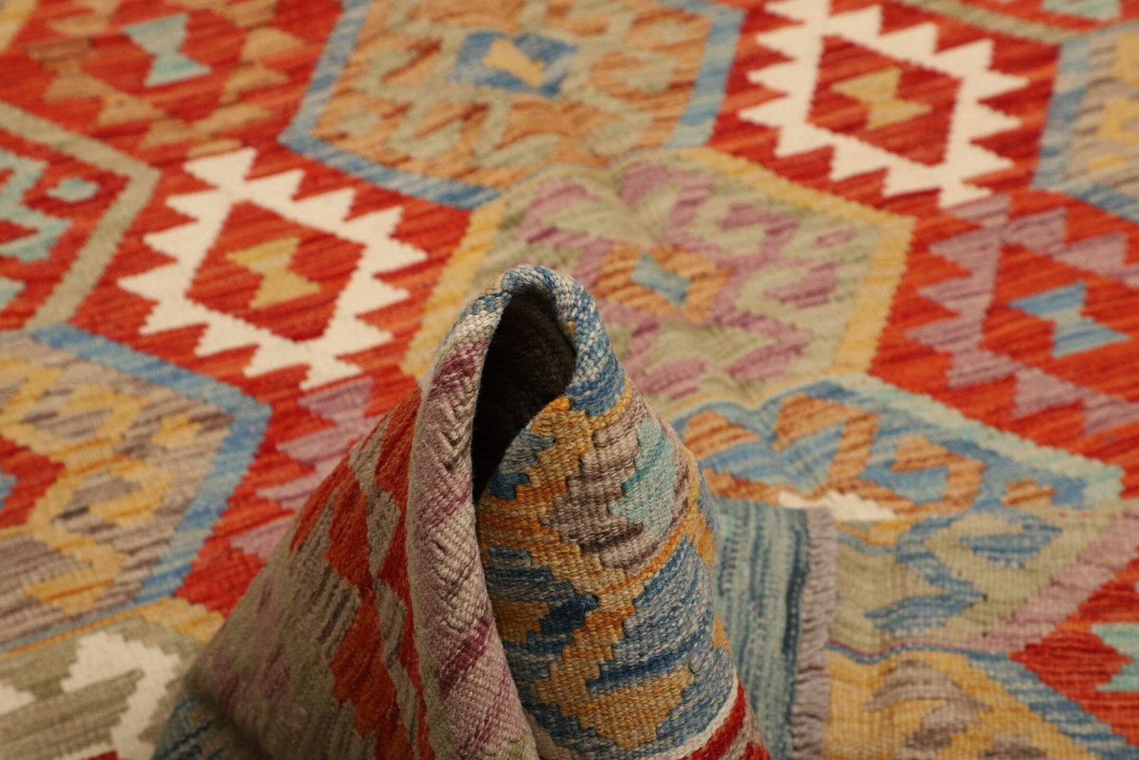Ein handgewebter Kelim Teppich bringt nicht nur Schönheit und Stil in Ihre Räume, sondern bietet auch viele praktische Vorteile. Die flache Webart ermöglicht eine einfache Pflege und einen unkomplizierten Transport, während die atmungsaktiven Eigenschaften der Wolle dazu beitragen, ein angenehmes Raumklima zu schaffen.