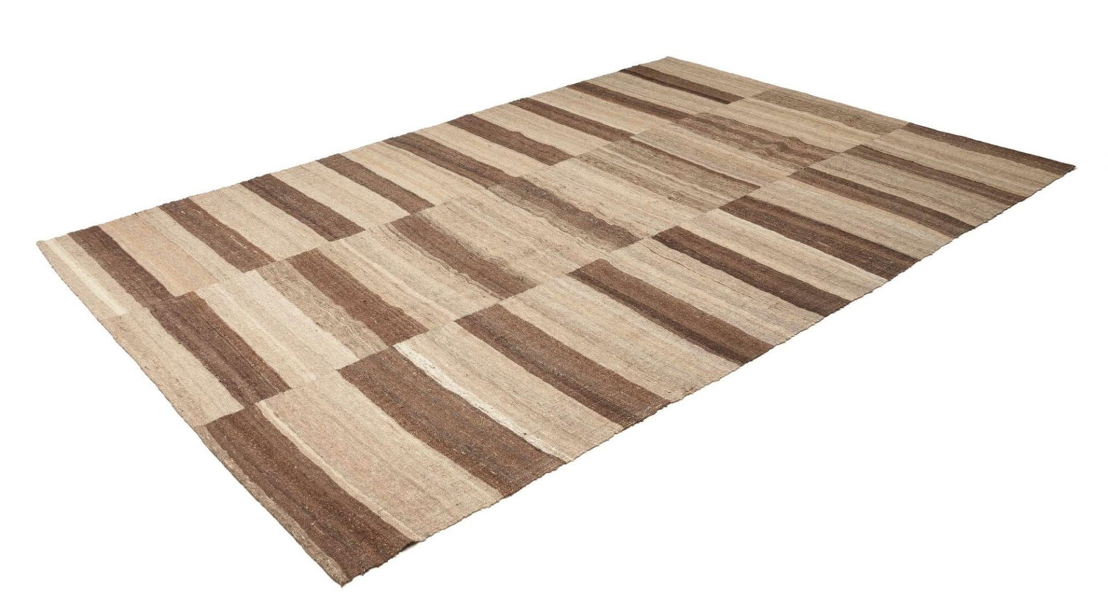 Dieser Kelim Teppich ist aus natürlichen, nachhaltig gewonnenen Materialien gefertigt. Die Verwendung von reiner Wolle sorgt nicht nur für eine angenehme Haptik, sondern auch für Langlebigkeit und Robustheit. Wolle hat zudem die Eigenschaft, Feuchtigkeit zu regulieren und Wärme zu speichern, was den Teppich zu einem perfekten Bodenbelag für jede Jahreszeit macht.