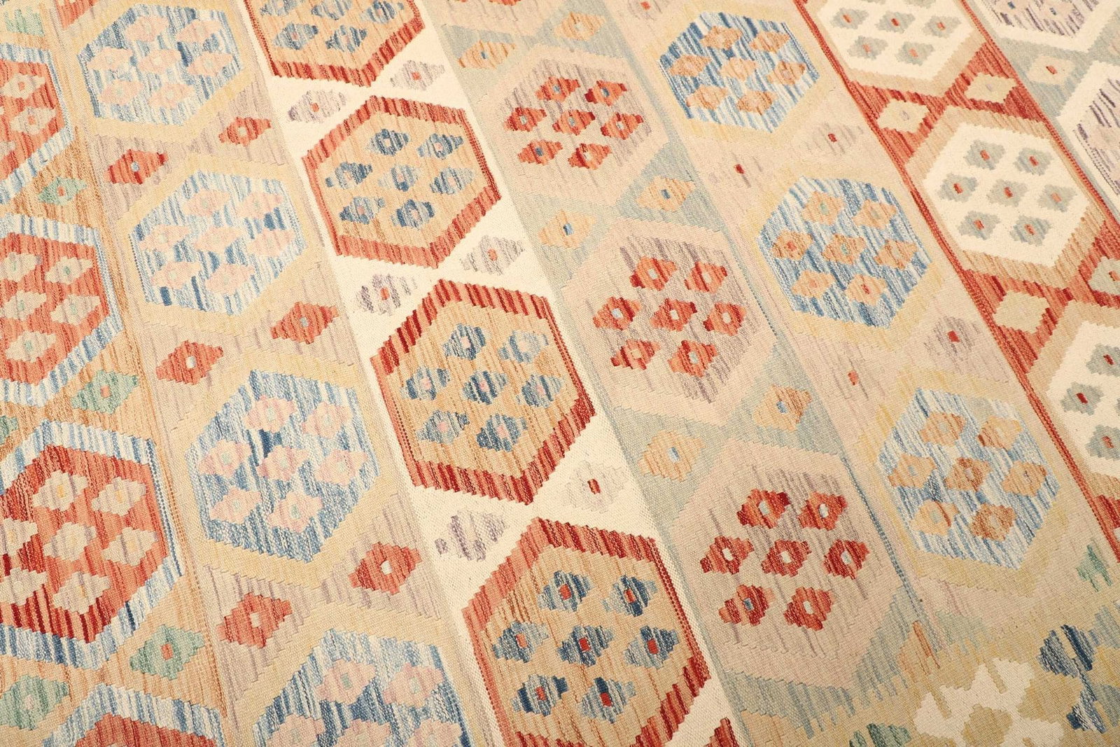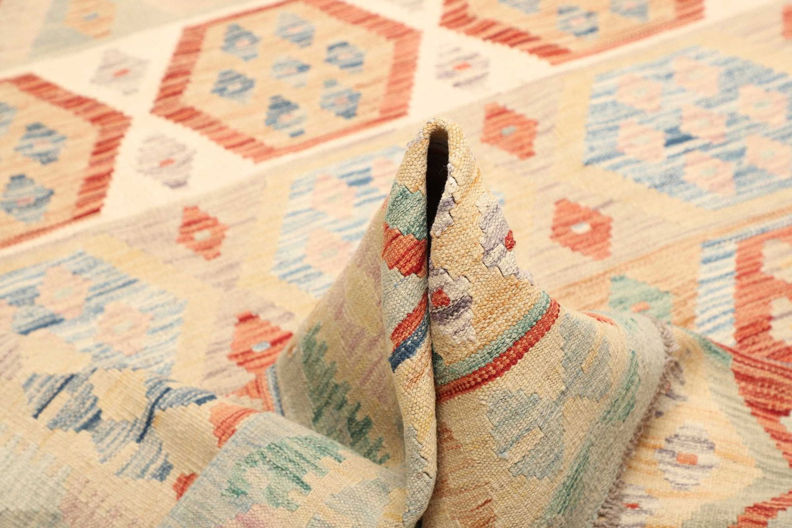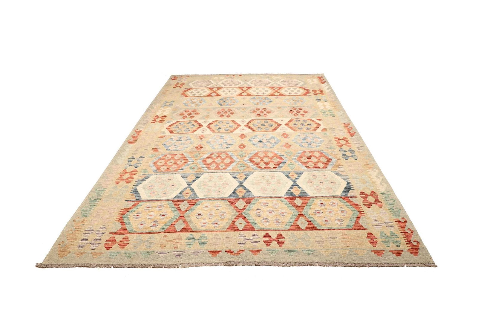 Kelim Teppich 203 x 300cm, handgewebt, rustikales Design, Wolle