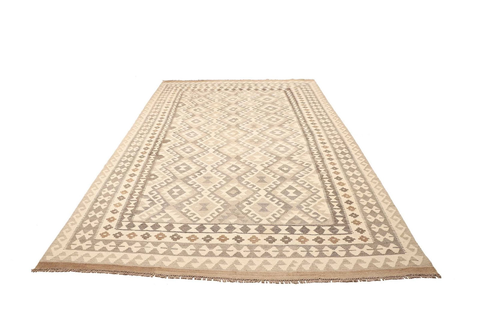 876$ In den WarenkorbHandgewebter Wollteppich Ghashgai Kelim in Naturfarbe – Maße: 292 x 206 cm