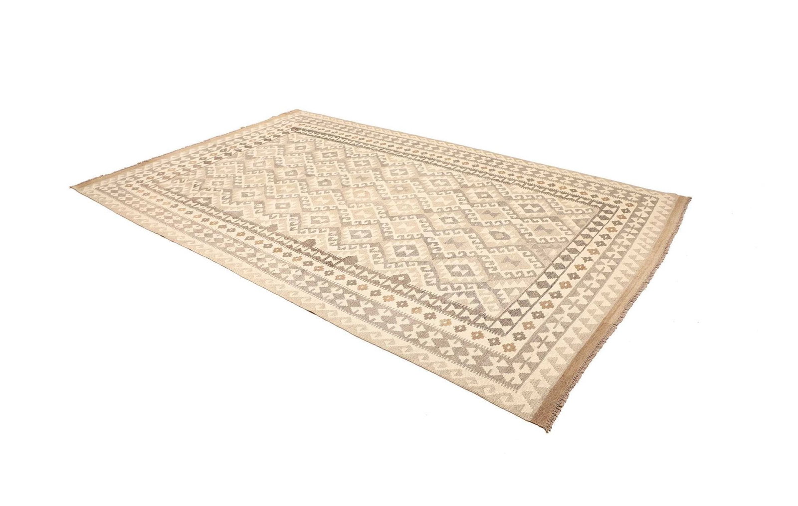 971$ In den WarenkorbHandgewebter Ghashgai Kelim Teppich aus Wolle in Naturfarbe – 290 x 200 cm