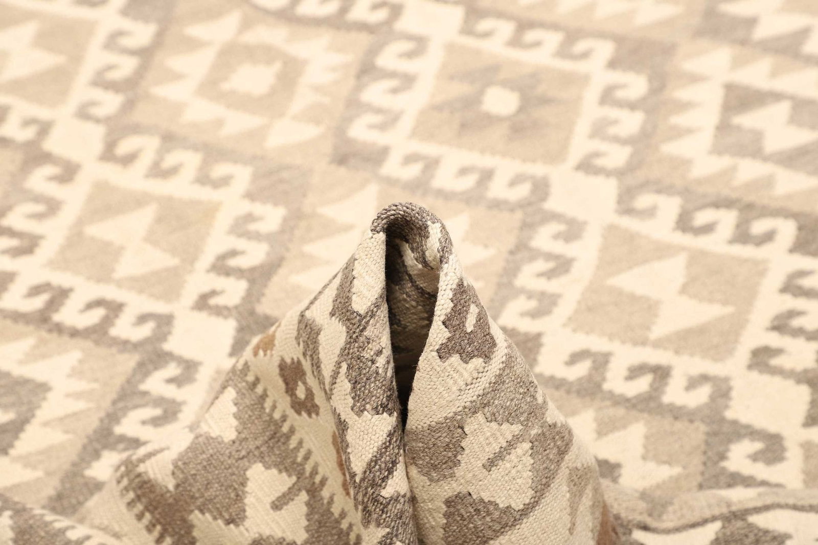 Der Kelim Teppich besteht ausschließlich aus hochwertiger Wolle, die für ihre Strapazierfähigkeit und Langlebigkeit bekannt ist. Wolle ist ein natürliches Material, das nicht nur weich und angenehm für die Füße ist, sondern auch hervorragende isolierende Eigenschaften besitzt. Die handgewebte Technik sorgt dafür, dass jeder Teppich ein Unikat ist. Die Knotendichte ist optimal gewählt, um sowohl die Ästhetik als auch die Funktionalität zu gewährleisten. Durch die besondere Verarbeitung angenehme Haptik und Robustheit, was ihn ideal für stark frequentierte Räume macht.