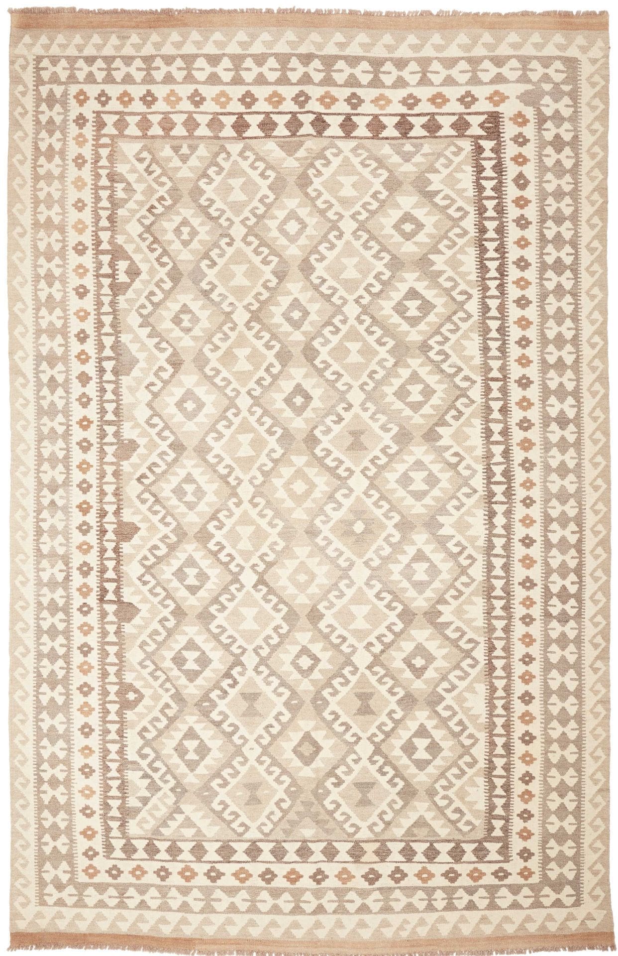 Handgewebter Wolle Ghashgai Kelim Teppich in Naturfarbe 286 x 192 cm