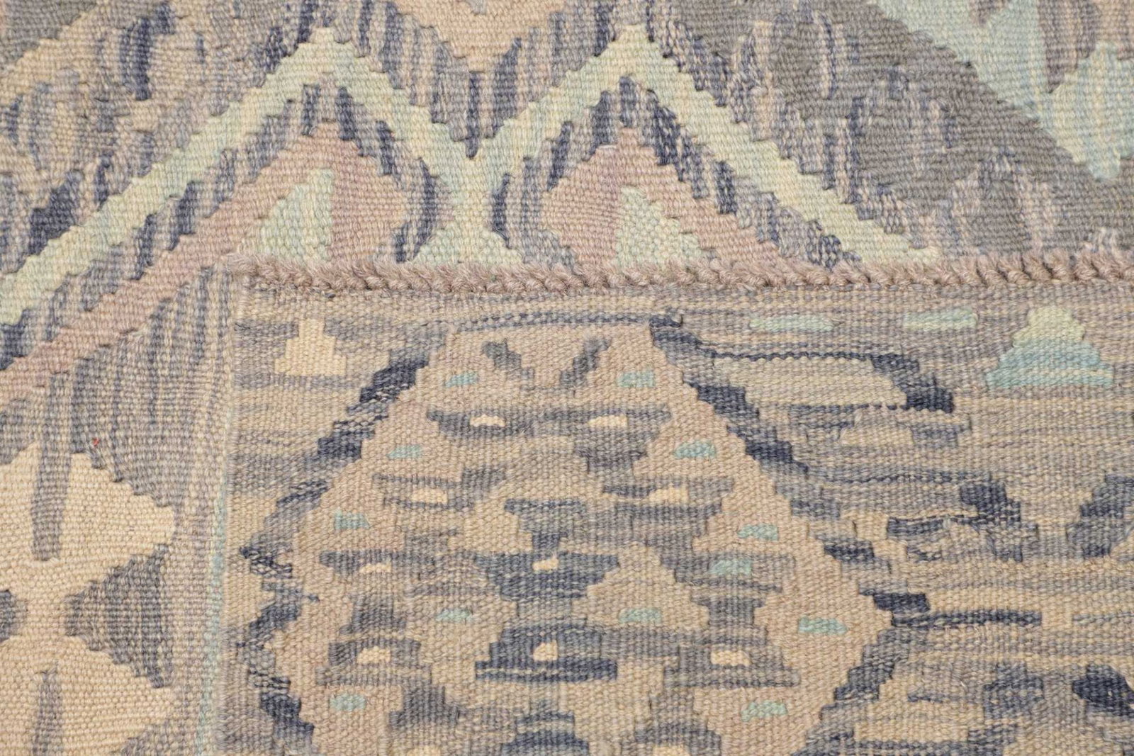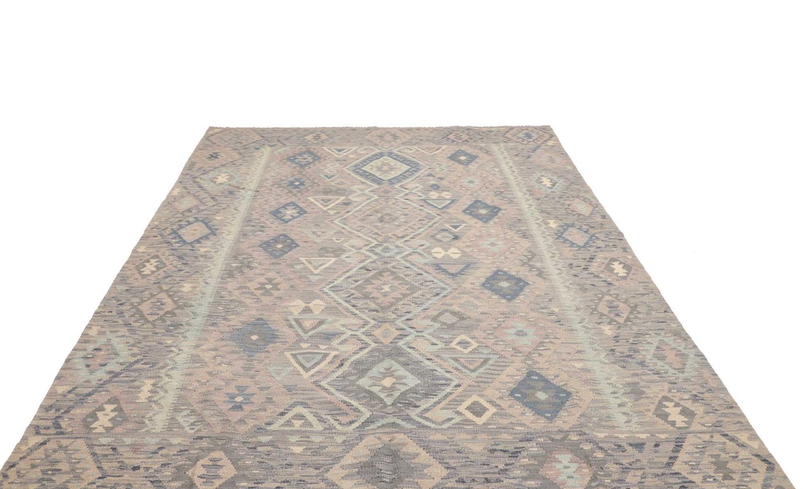 Handgewebter Kelim | Knotendichte: ca. 200.000 / m² | Material: Flor: 100% Schurwolle, Kette: 100% Baumwolle | Größe: 204 x 292 cm | Herkunft: Pakistan