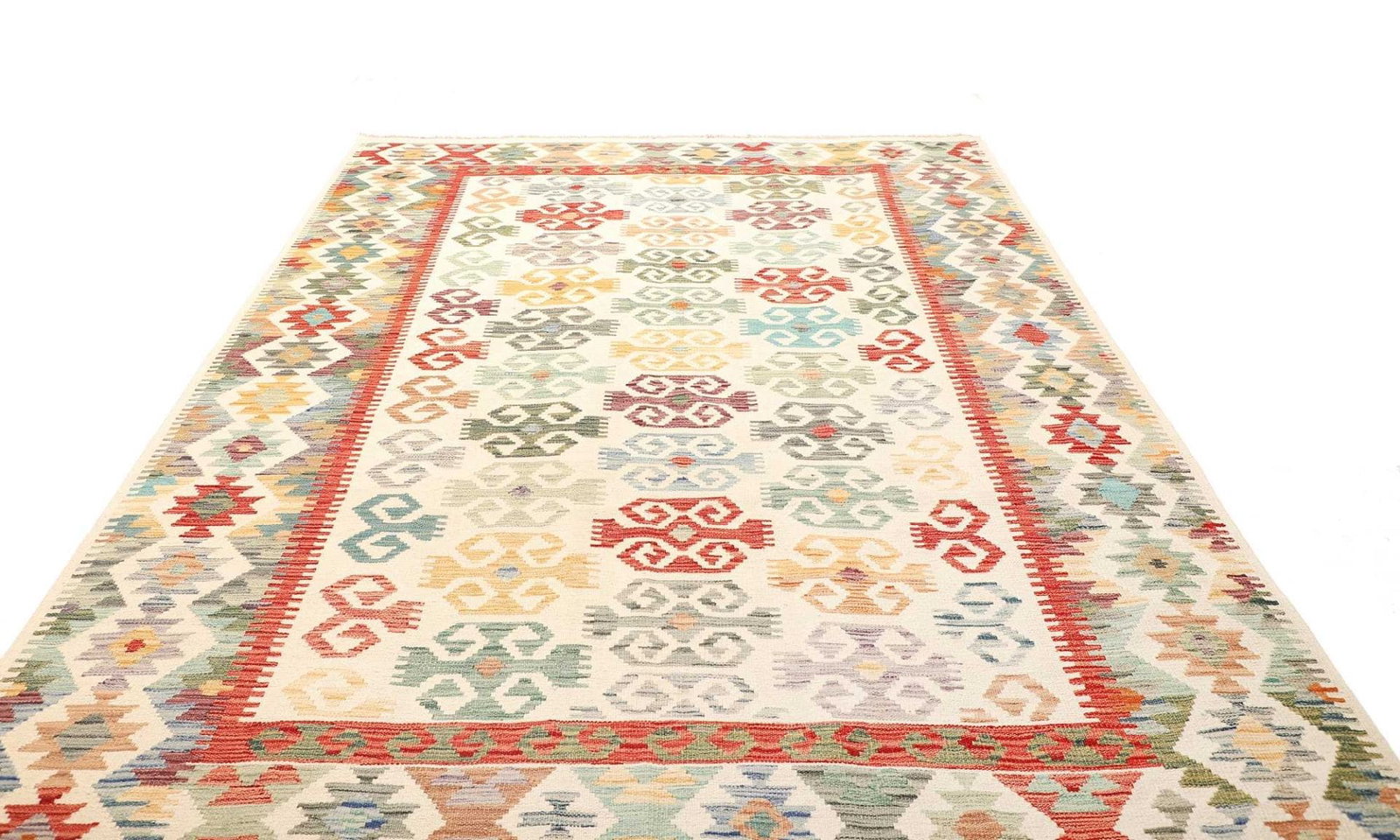 1022$Ursprünglicher Preis war: 1022$887$Aktueller Preis ist: 887$Kelim Teppich | Knotendichte: ca. 200.000 Knoten/m² | Material: 100% Schurwolle (Flor) und 100% Baumwolle (Kette) | Größe: 204 x 302 cm | Handgewebte Qualität | Herkunft: Pakistan | Höhe: ca. 5 mm | Rustikales Flair für moderne Einrichtungen