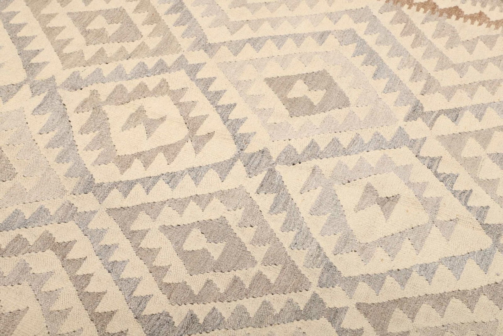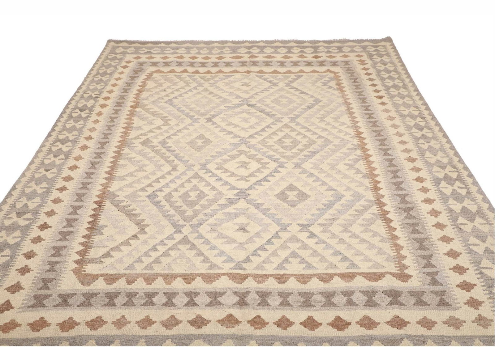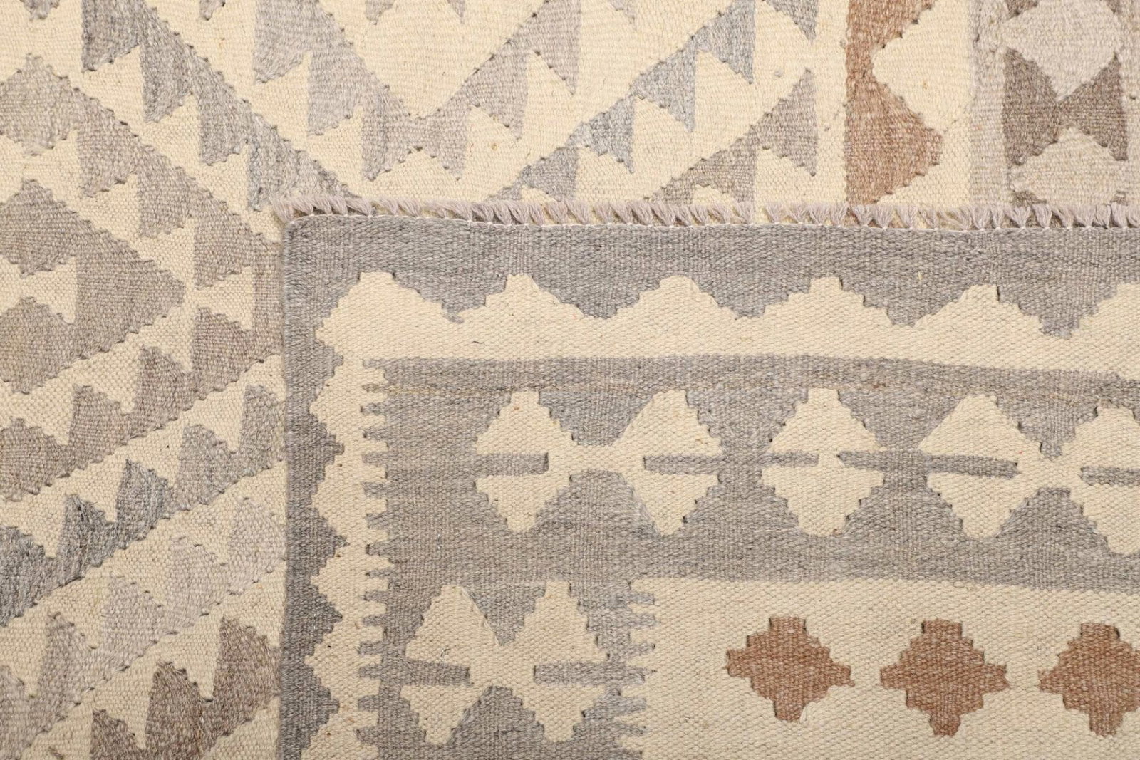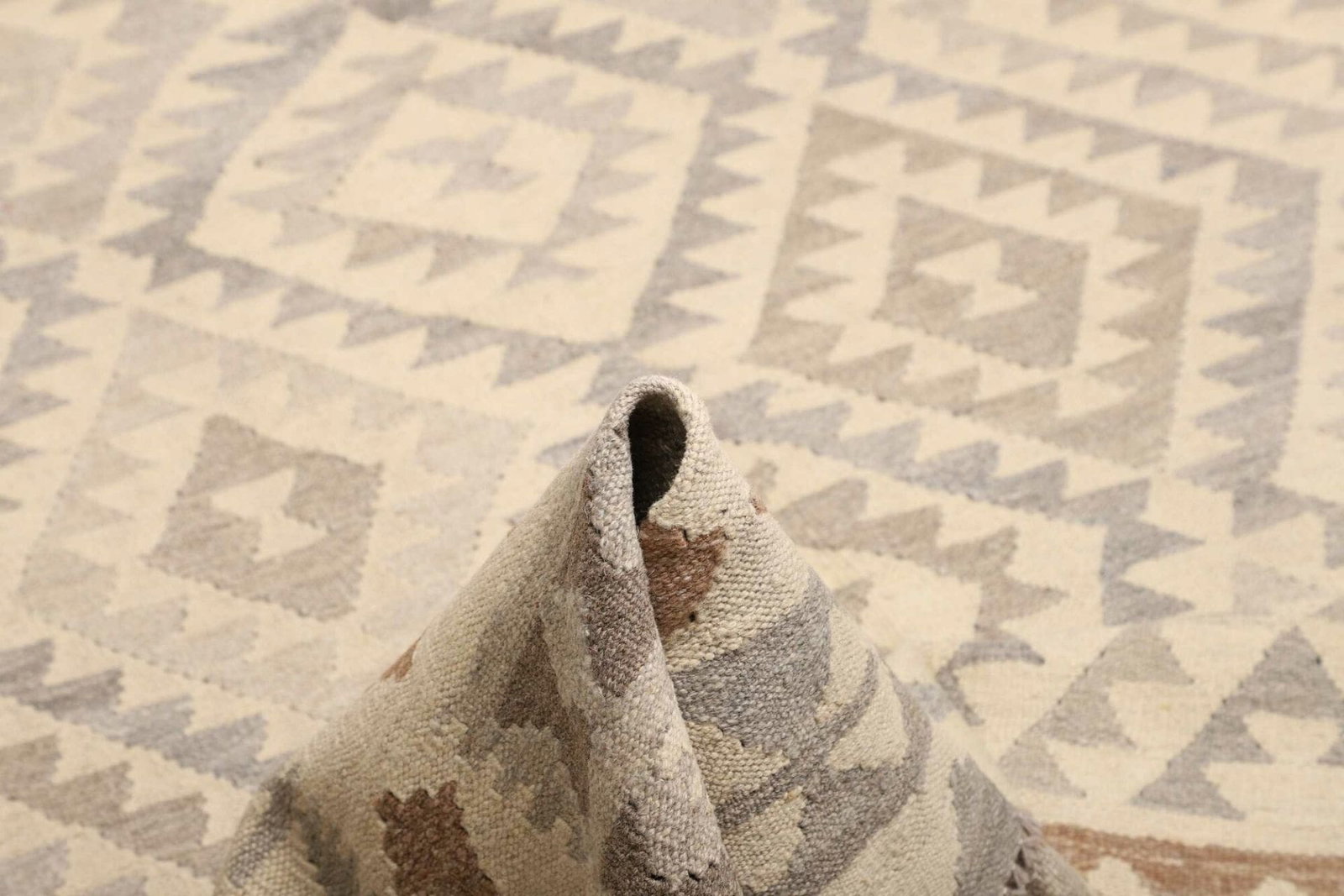 Der Teppich ist aus hochwertiger Wolle gefertigt, einem Material, das für seine Langlebigkeit und Wärme geschätzt wird. Wolle ist nicht nur strapazierfähig, sondern sorgt auch für eine angenehme Fußwärme und einen weichen Laufkomfort. Das handgewebte Verfahren, das für die Herstellung von Kelim Teppichen typisch ist, verleiht dem Teppich zusätzlich eine besondere Struktur und Optik. Jeder Teppich erzählt die Geschichte derjenigen, die ihn gewebt haben, und die Liebe zum Detail ist in jedem Faden spürbar.