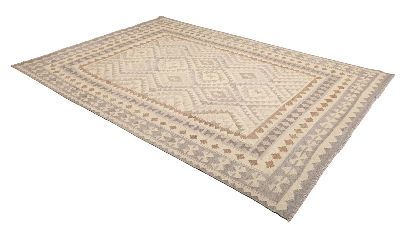 Kelim Teppich | Knotendichte: ca. 200.000 Knoten/m² | Material: 100% Schurwolle (Flor), 100% Baumwolle (Kette) | Größe: 205×293 cm | Herkunft: Pakistan | Höhe: ca. 5mm | Handgewebte Qualität | Rustikales Flair, ideal für moderne Einrichtungen