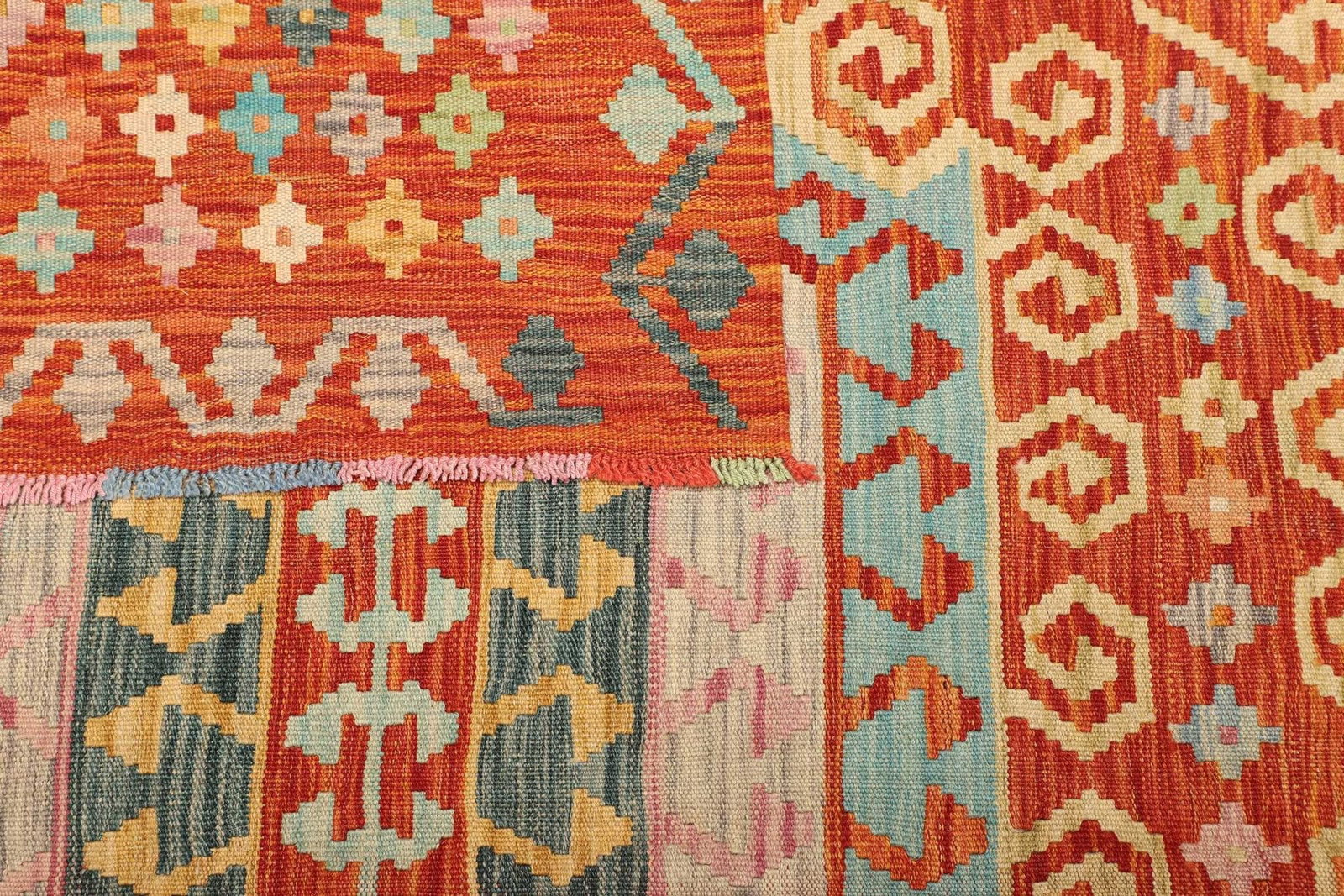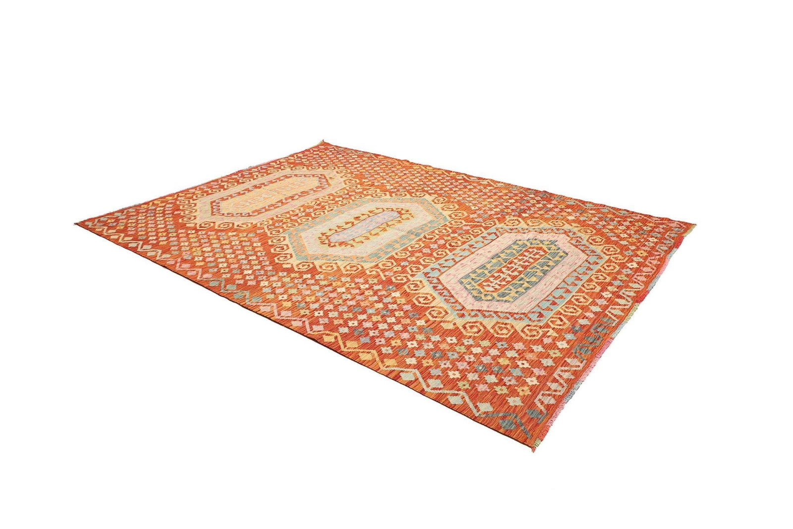 971$ In den WarenkorbKelim 206 x 145 cm – Gewebt mit identischen Mustern auf Vorder- und Rückseite, ideal als Wandbehang, handgewebt, Orientteppich