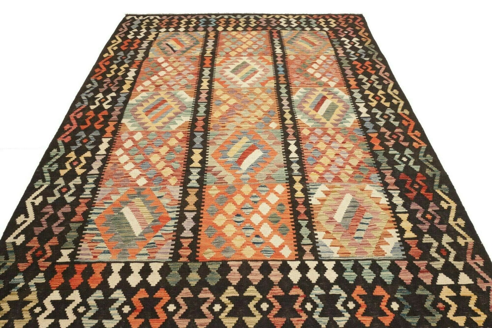 Der Kelim Teppich ist vielseitig einsetzbar und eignet sich hervorragend für Wohn- und Schlafzimmer, aber auch für Flure oder Essbereiche. Dank seiner ansprechenden Designs fügt er sich harmonisch in verschiedene Einrichtungsstile ein.