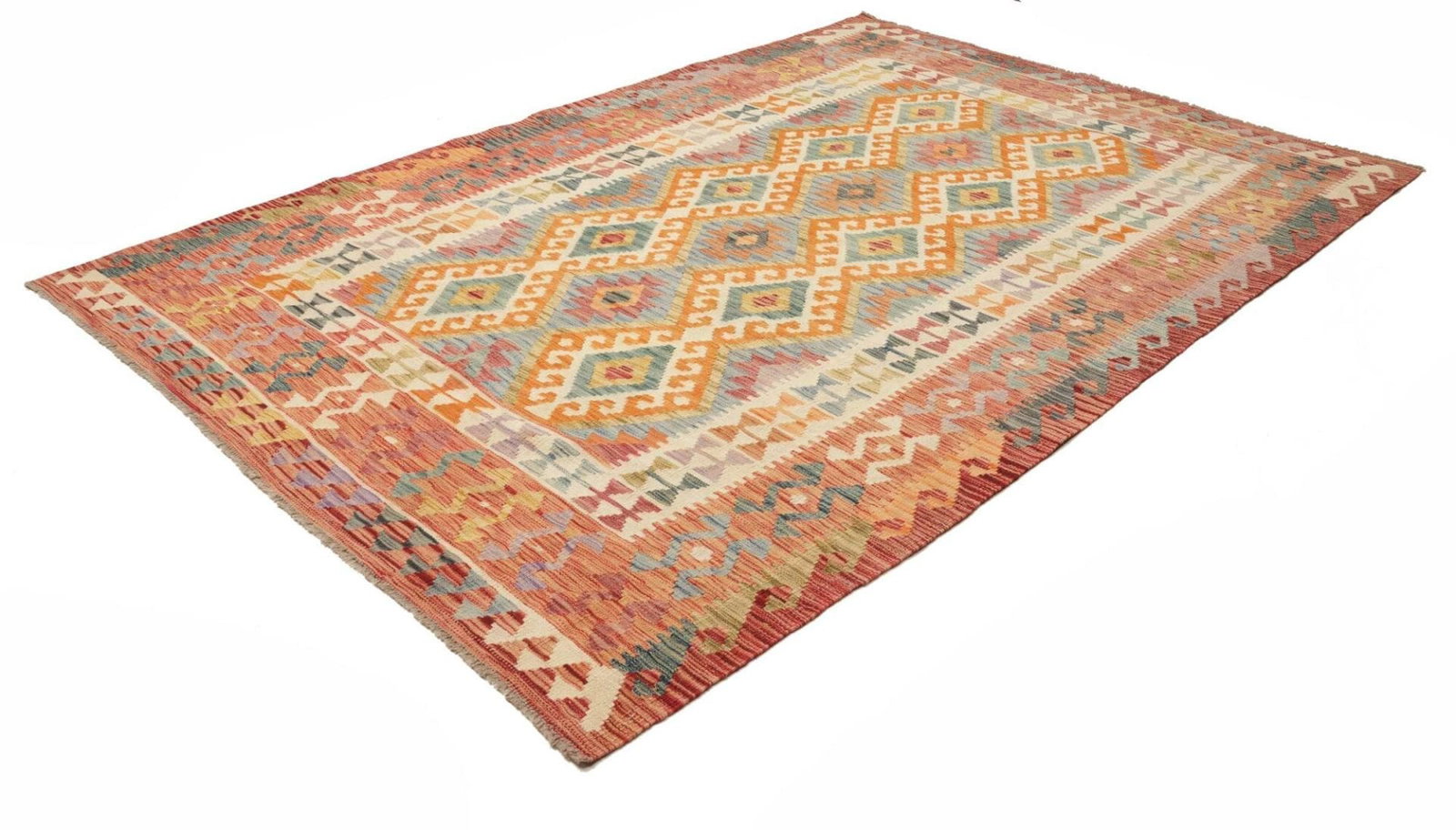 Kelim Teppich | Knotendichte: ca. 200.000 Knoten/m² | Material: 100% Schurwolle | Kette: 100% Baumwolle | Größe: 206×299 cm | Herkunft: Pakistan | Höhe: ca. 5mm | Handgewebte Qualität