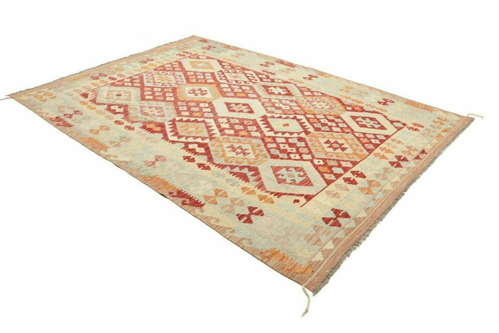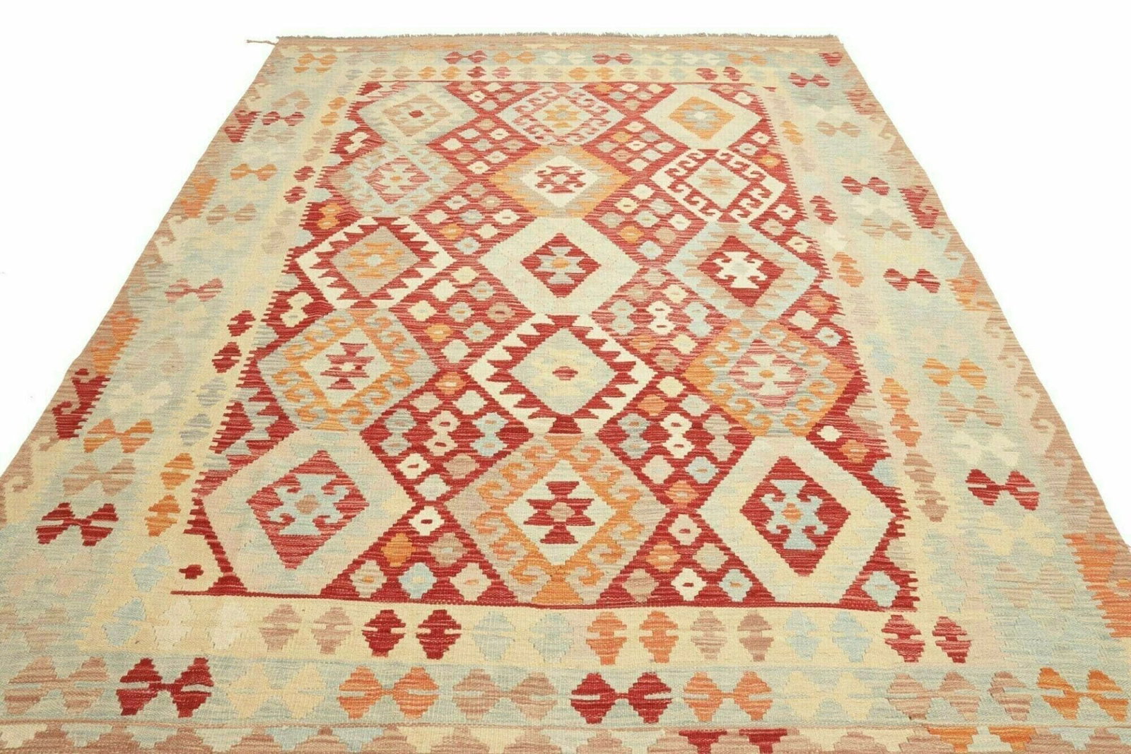 Kelim Teppich | Knotendichte: ca. 200.000 Knoten/m² | Material: 100% Schurwolle und 100% Baumwolle | Größe: 207 x 281 cm | Höhe: ca. 5 mm | Handgewebte Qualität | Herkunft: Pakistan | Vielseitig einsetzbar als Teppich, Vorhang oder Wandschmuck