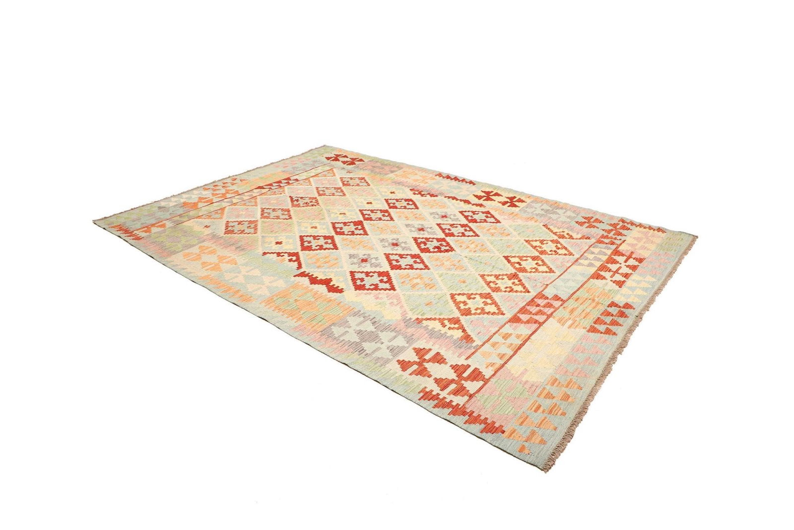 966$Ursprünglicher Preis war: 966$820$Aktueller Preis ist: 820$Kelim Teppich | Knotendichte: 200.000 Knoten/m² | Material: 100% Schurwolle und 100% Baumwolle | Größe: 207×291 cm | Höhe: ca. 5mm | Herkunft: Pakistan | Handgewebte Qualität | Rustikales Flair für moderne Wohnräume