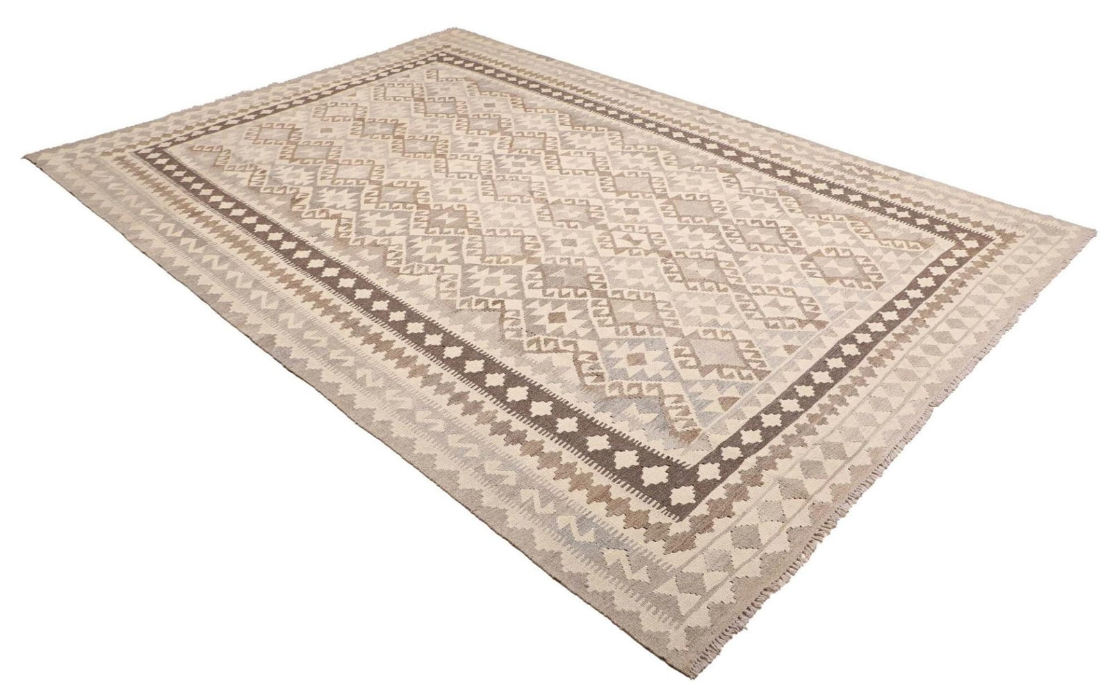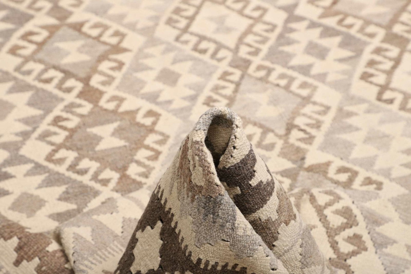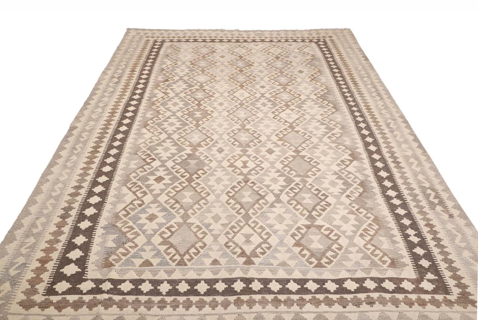 1446$ In den WarenkorbHandgewebter Ghashgai Kelim Teppich aus Wolle in Naturfarbe – 286 x 200 cm