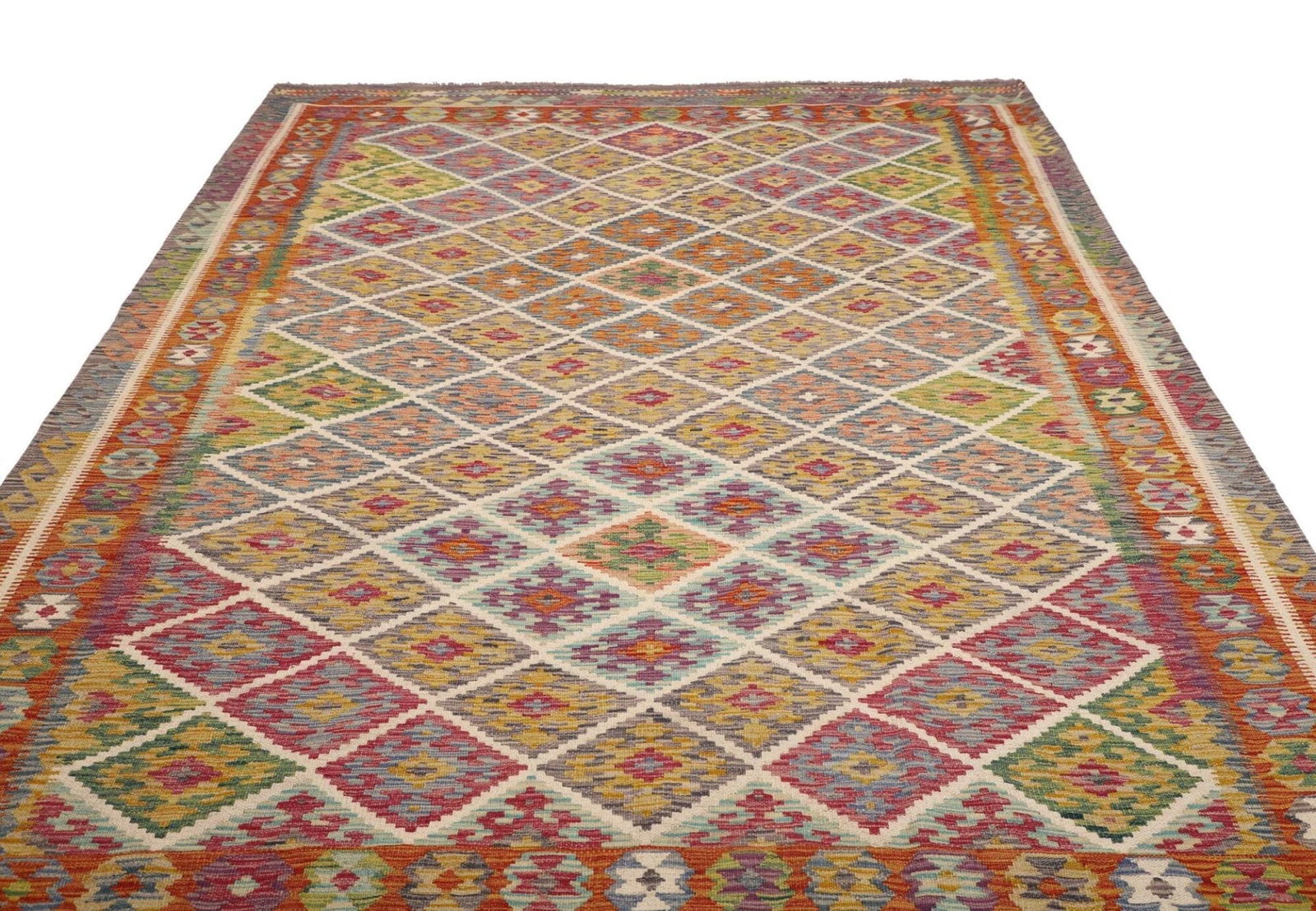 931$ In den WarenkorbKelim 215 x 144 cm – Handgewebt mit identischem Muster auf Vorder- und Rückseite – Orientteppich