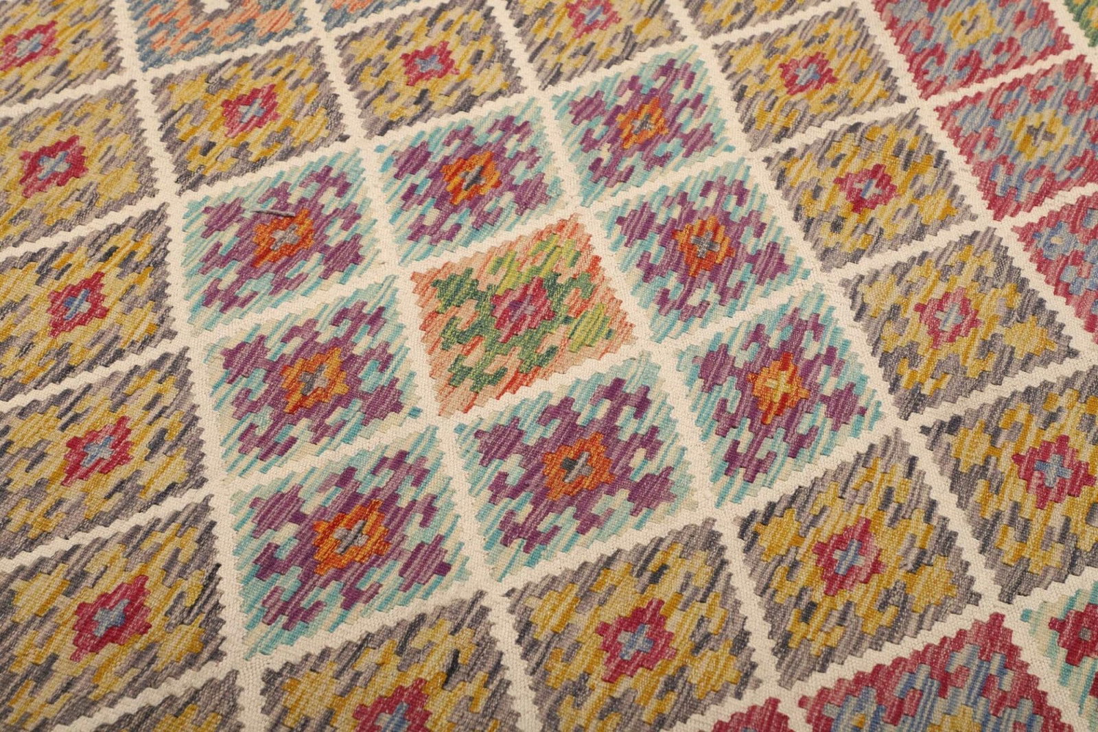 Der Kelim Teppich zeichnet sich durch seine außergewöhnliche Verarbeitung und Materialwahl aus. Die Verwendung von 100% reiner Wolle sorgt für eine hohe Strapazierfähigkeit und Langlebigkeit. Wolle ist nicht nur angenehm fußwarm, sondern hat auch schmutzabweisende Eigenschaften und ist pflegeleicht. Darüber hinaus bietet sie eine natürliche Isolation gegen Kälte und Wärme, was den Teppich auch ideal für unterschiedliche Klimabedingungen macht.