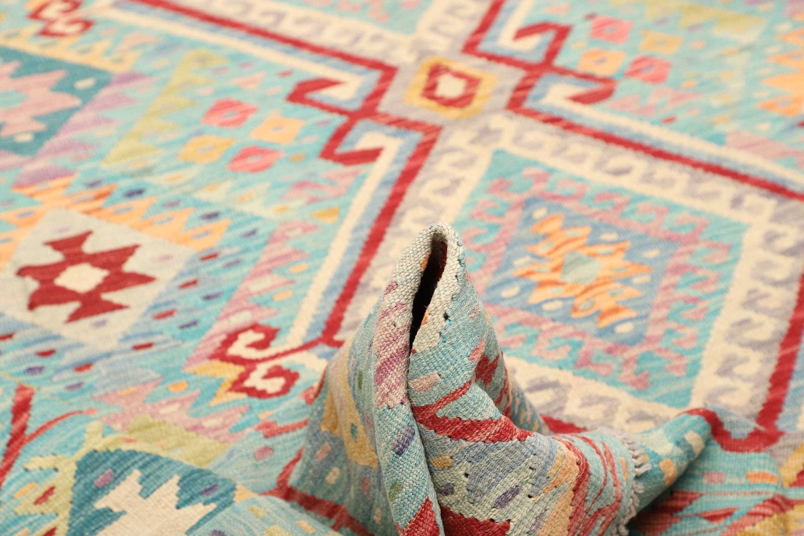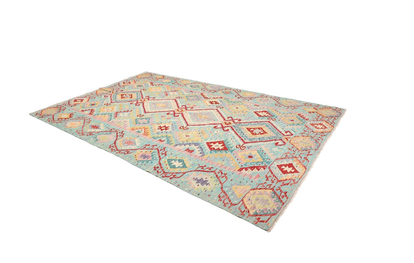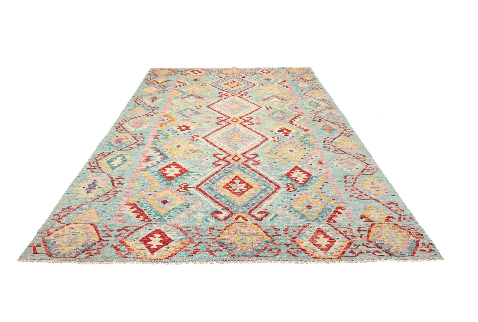 1022$Ursprünglicher Preis war: 1022$824$Aktueller Preis ist: 824$Kelim Teppich | Knotendichte: ca. 200.000 Knoten/m² | Material: 100% Schurwolle (Flor), 100% Baumwolle (Kette) | Größe: 208 x 290 cm | Höhe: ca. 5 mm | Zustand: Handgewebte Qualität | Herkunft: Pakistan