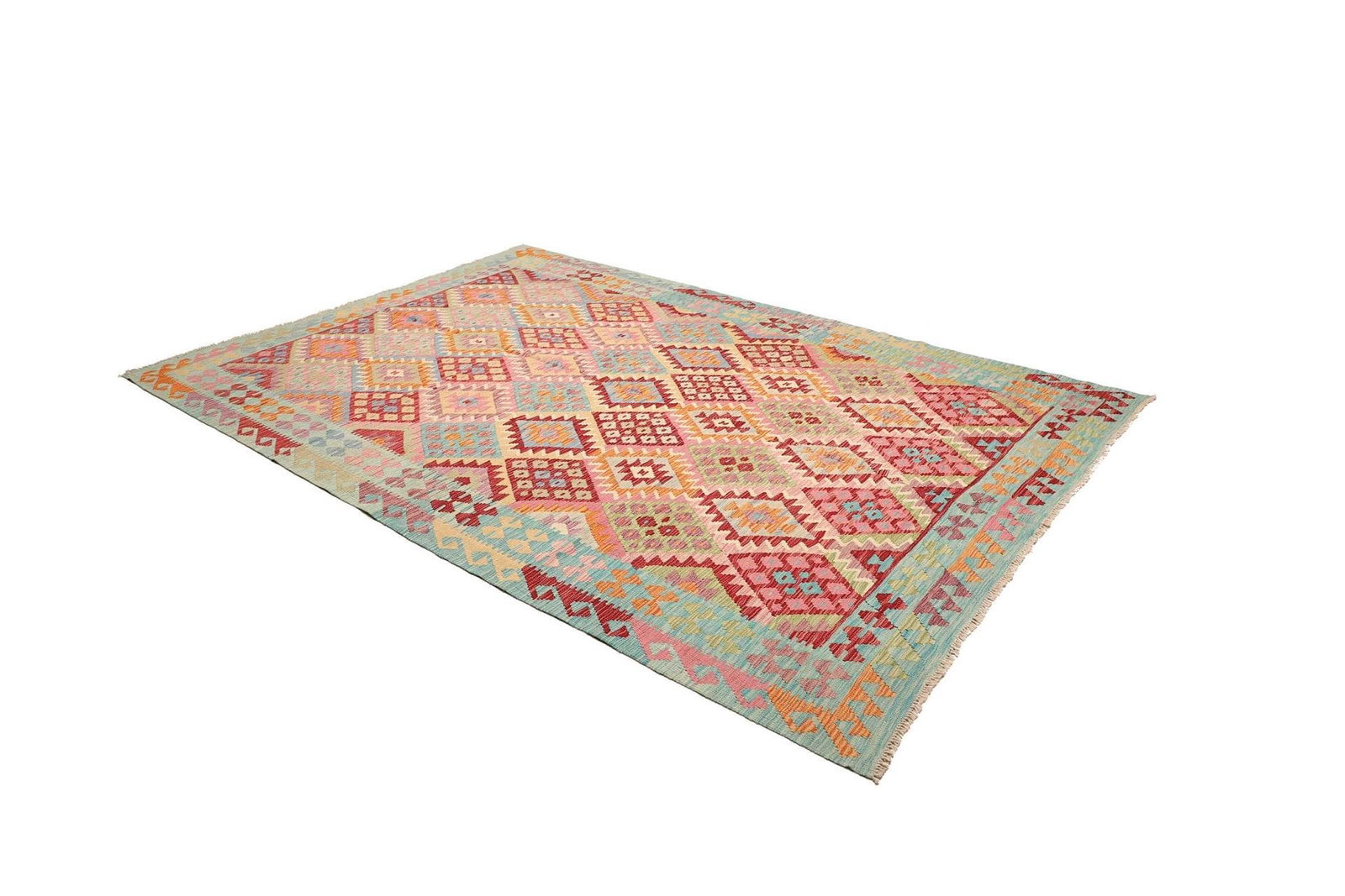 Handgewebter Kelim Teppich | Knotendichte: ca. 200.000 Knoten/m² | Material: 100% Schurwolle und 100% Baumwolle | Größe: 208 x 294 cm | Herkunft: Pakistan | Zustand: Sehr gut | Rustikales Flair, ideal für moderne und traditionelle Einrichtungsstile