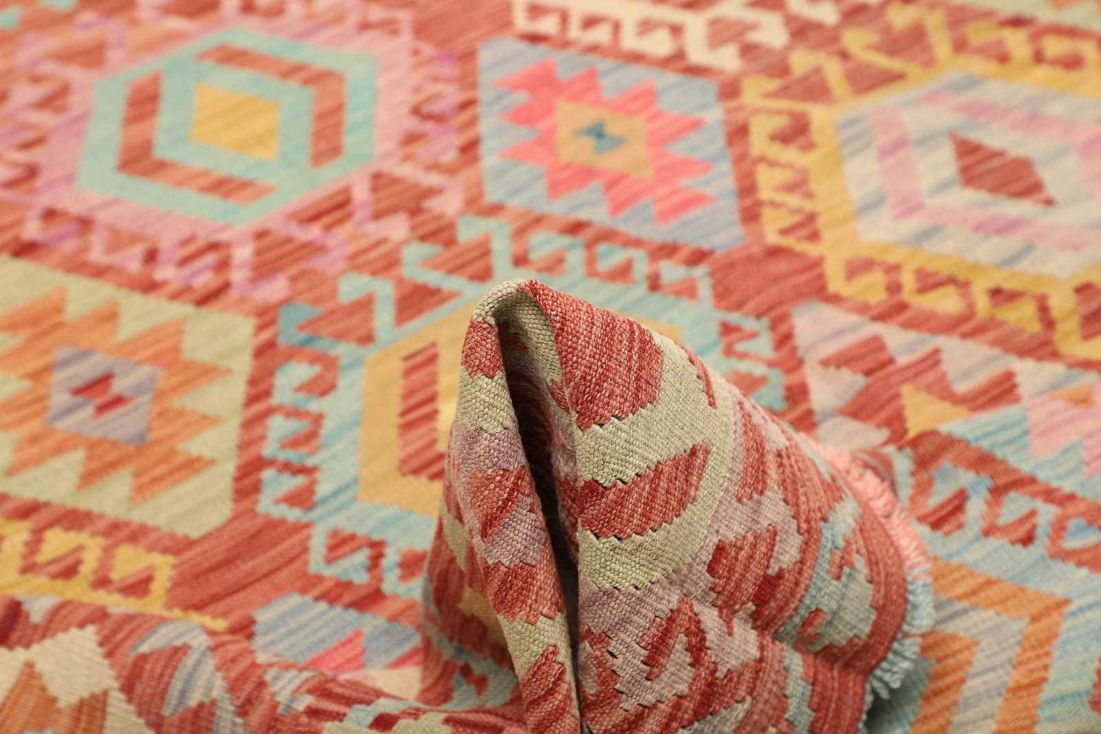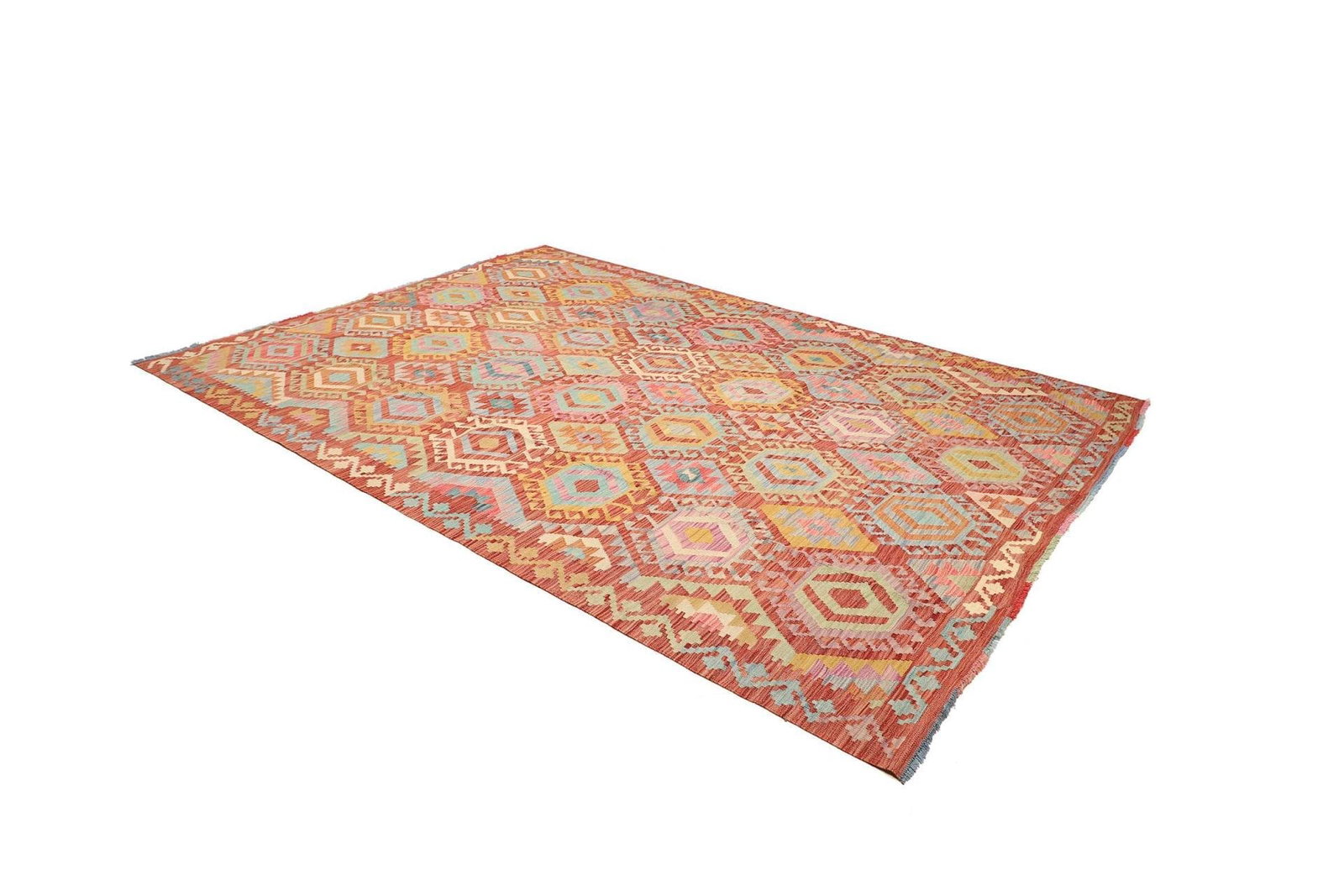 Kelim Teppich | Knotendichte: ca. 200.000 Knoten/m² | Material: 100% Schurwolle (Flor), 100% Baumwolle (Kette) | Größe: 208 x 294 cm | Herkunft: Pakistan | Höhe: ca. 5 mm | Handgewebte Qualität
